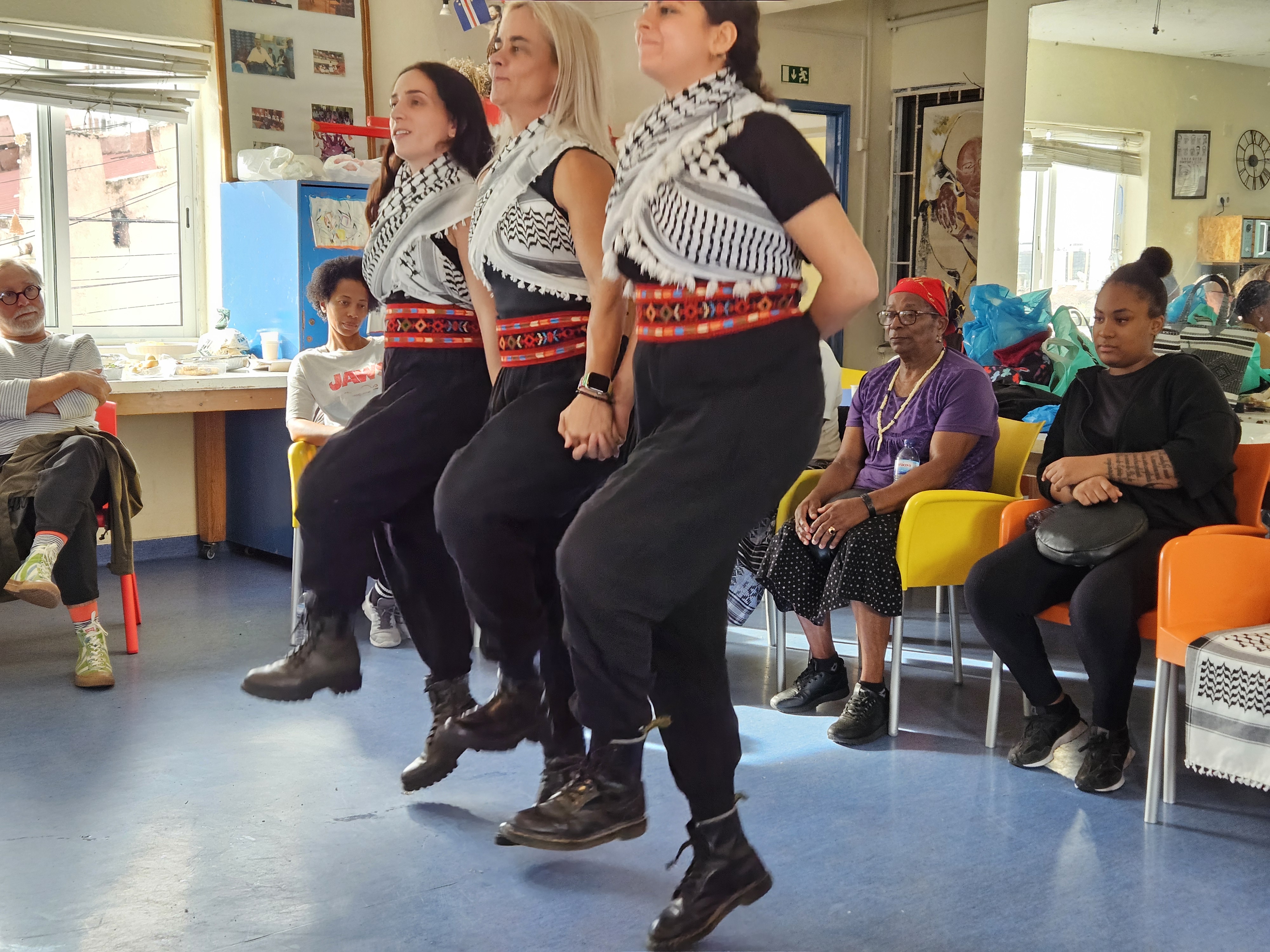Num primeiro momento, assistimos a um batuque interpretado pela Batukadeiras Finka Pé e a uma exibição de dança dabke pelo grupo Handala Dabke, duas manifestações culturais que nasceram para animar ocasiões festivas mas que vieram a tornar-se símbolos de resistência anti-colonial, em Cabo Verde e no Mediterrâneo Oriental.