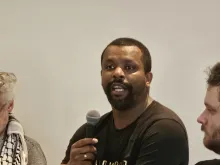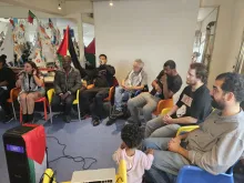 O encontro terminou com uma ronda de conversa introduzida e animada por Julie Neves, do CPPC, e em que participaram: Serenah Sabat, refugiada palestina residente em Portugal; Carlos Almeida, do MPPM; José Castilho, do Projecto Ruído; Manuel Guerra, realizador; Reginaldo e Tchino, dois dos jovens que se deslocaram à Palestina em 2011; e Flávio Almada, da Vida Justa.