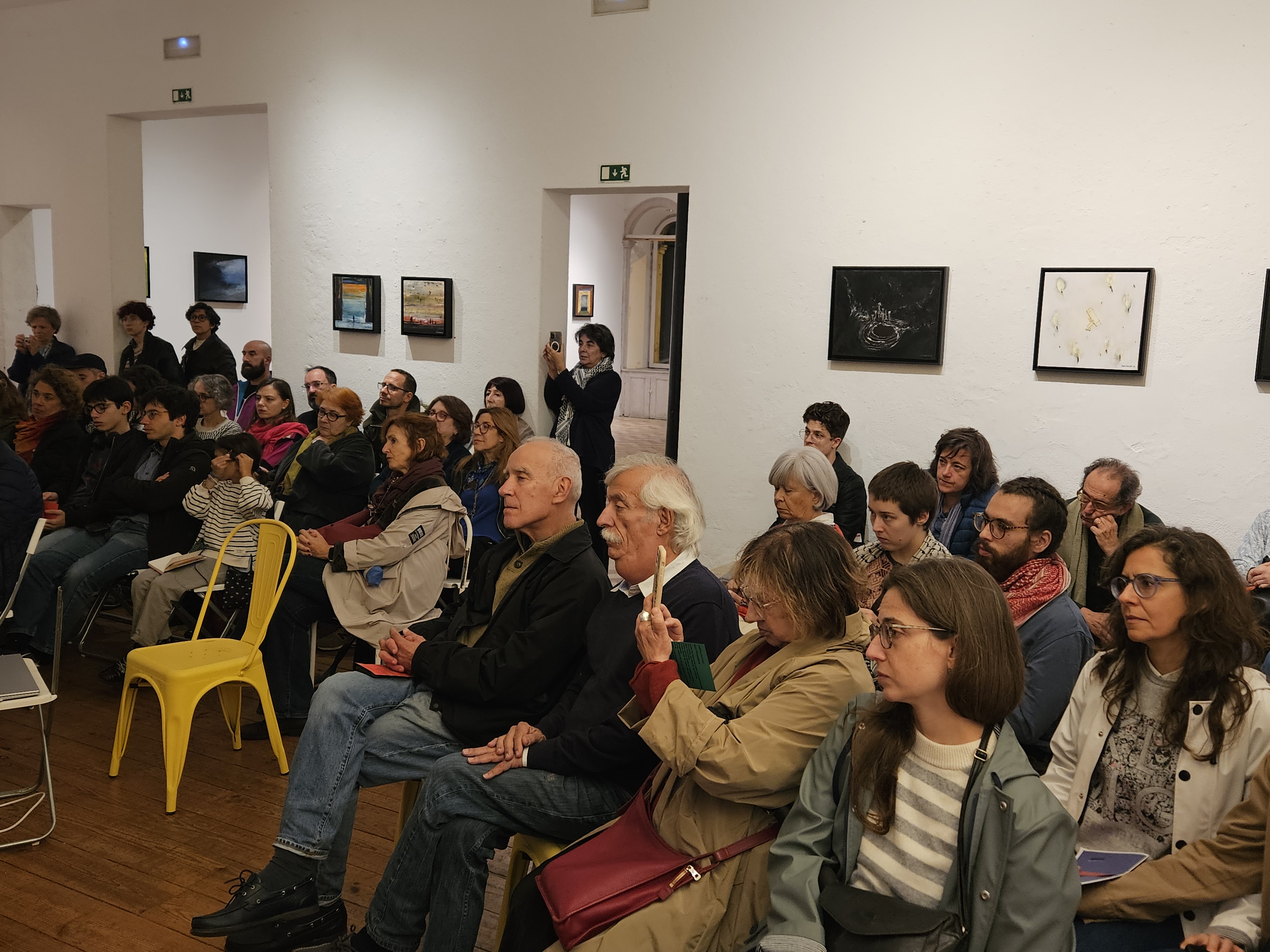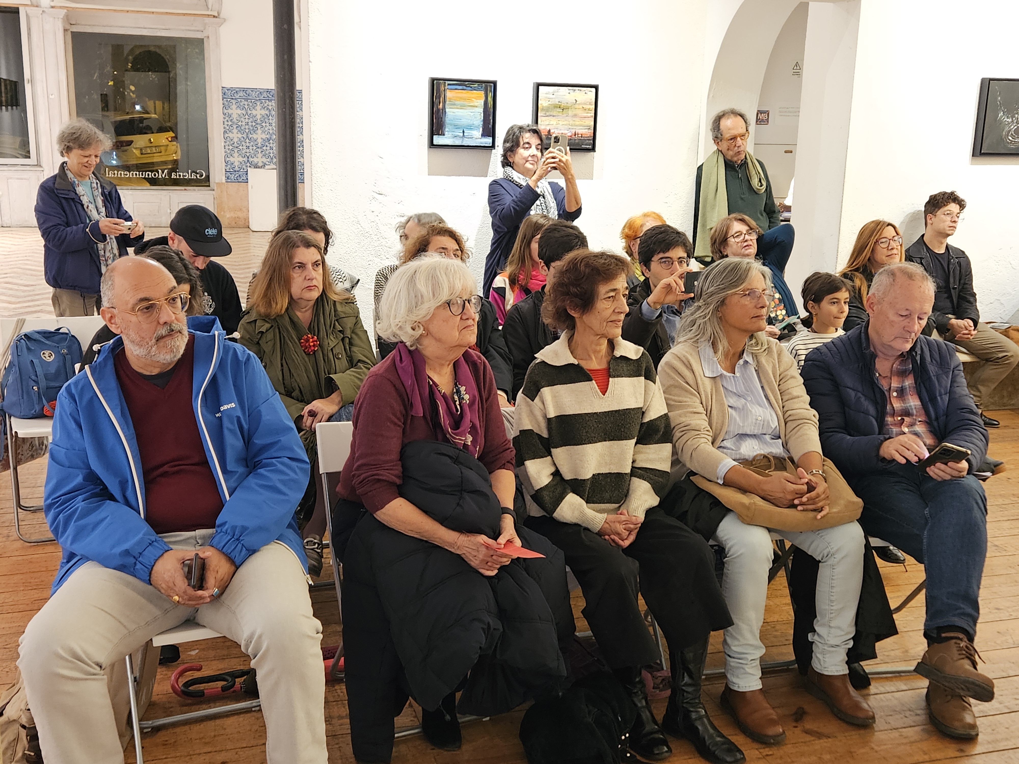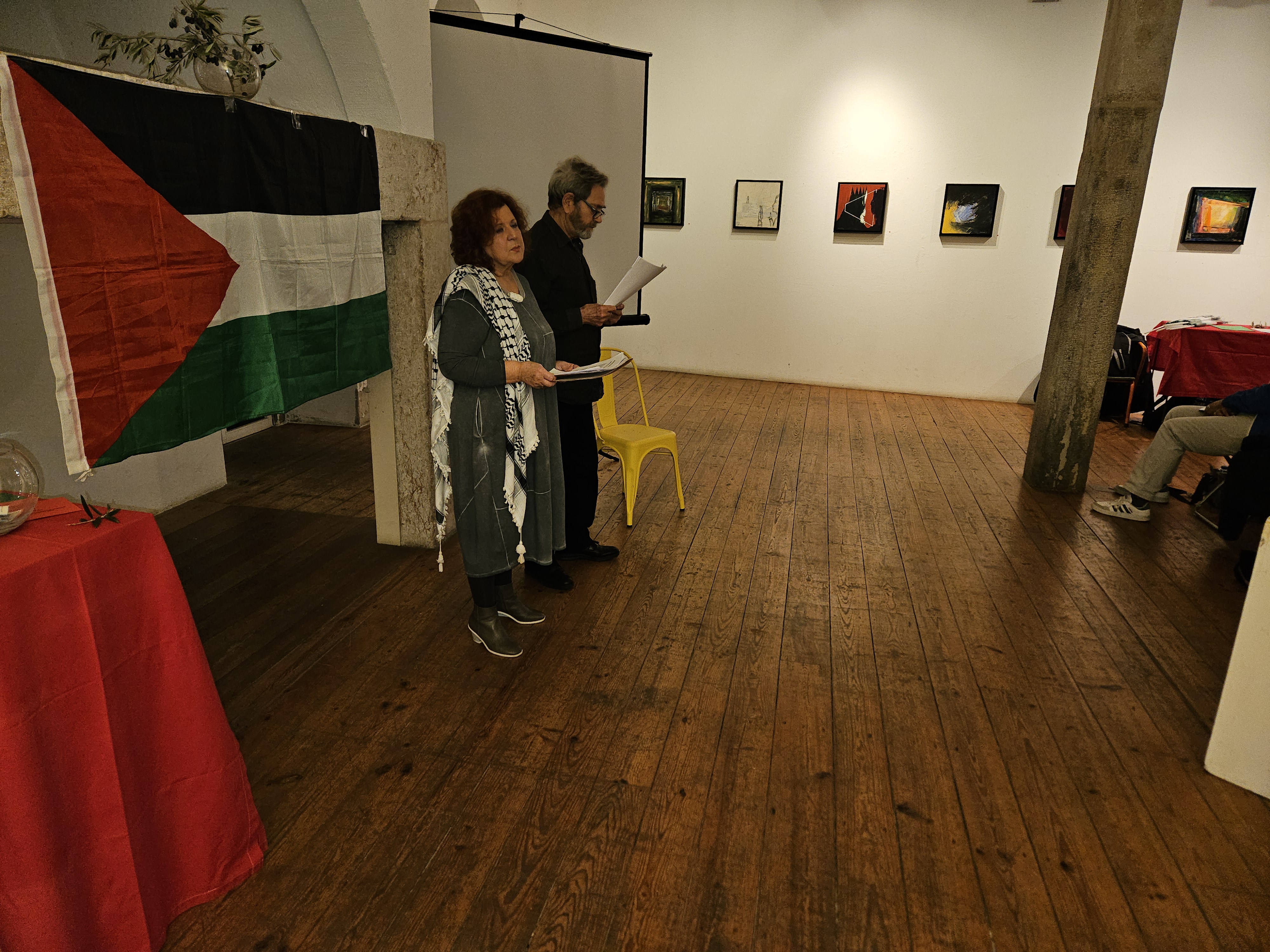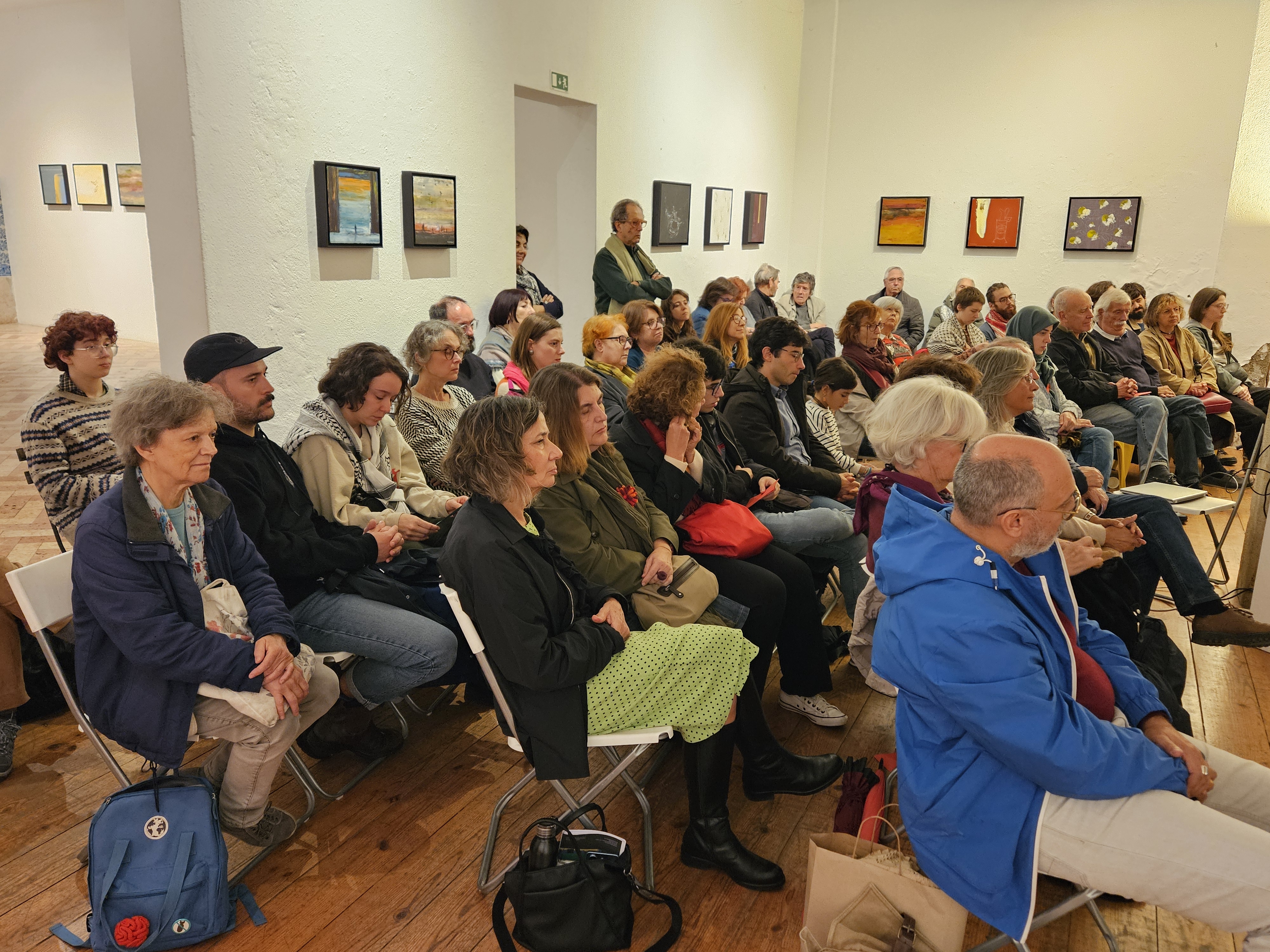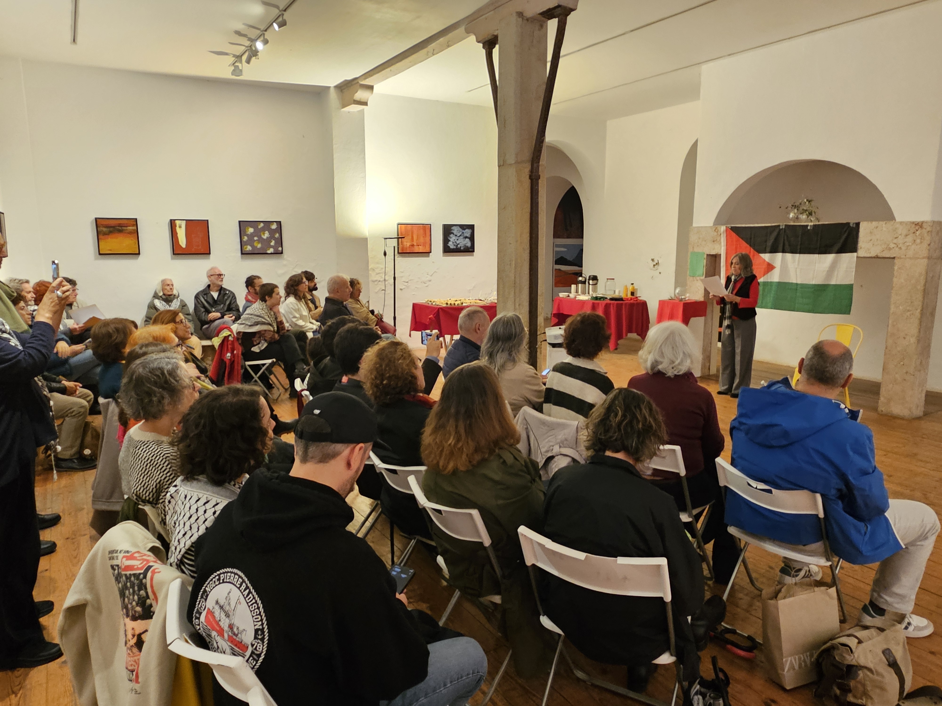 A finalizar, José Oliveira agradeceu a Ana Pereirinha e à Galeria Monumental por terem acolhido esta iniciativa e contextualizou brevemente a situação na Palestina, apelando à participação nas iniciativas de solidariedade que estão a ser promovidas por MPPM, CPPC, CGTP-IN e Projecto Ruído a culminar nas manifestações nacionais de 29 de Novembro, Dia Internacional de Solidariedade com o Povo Palestino.