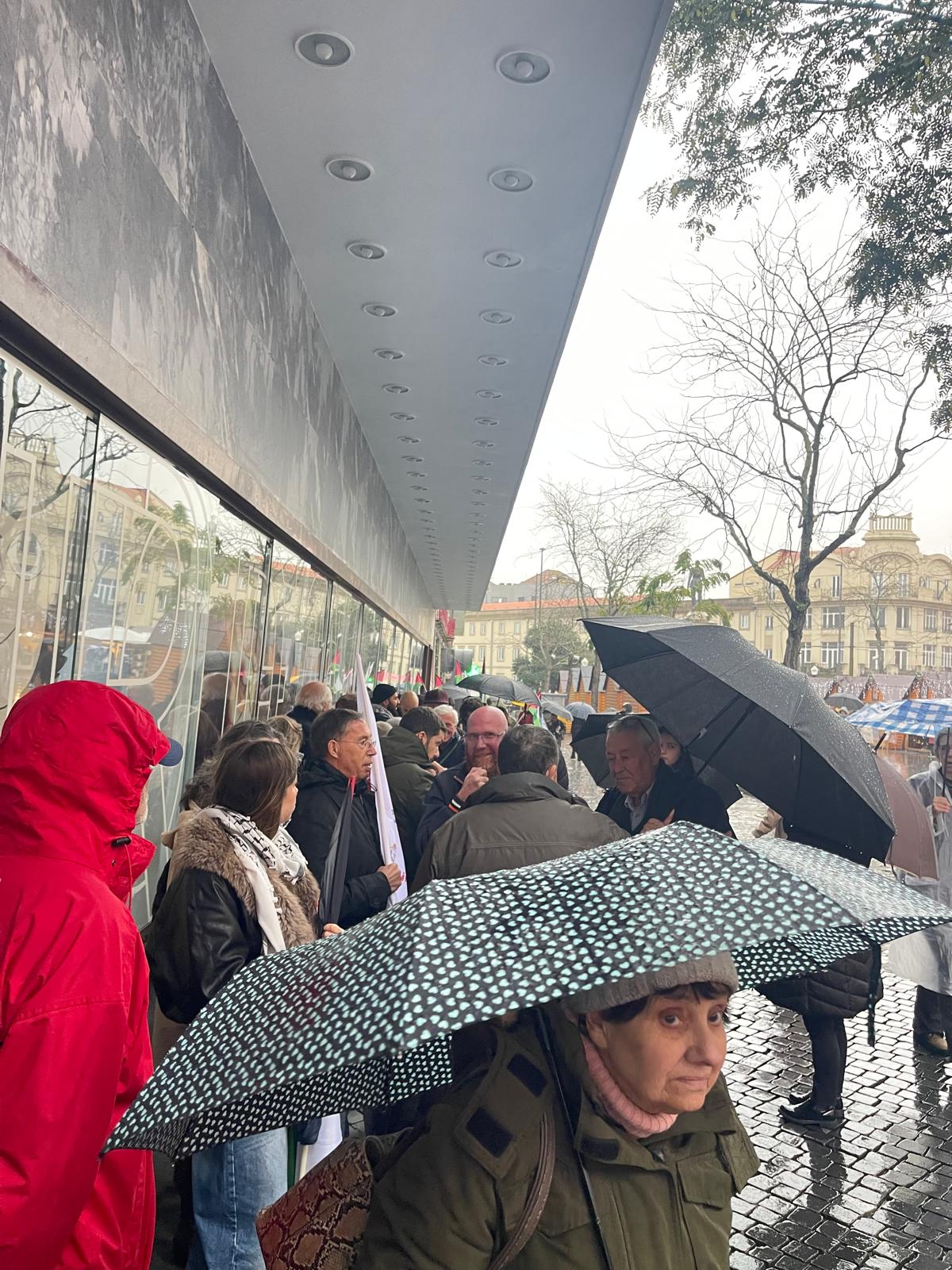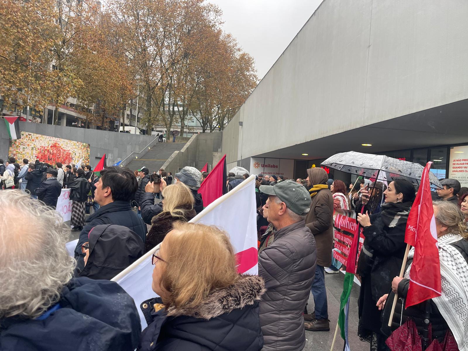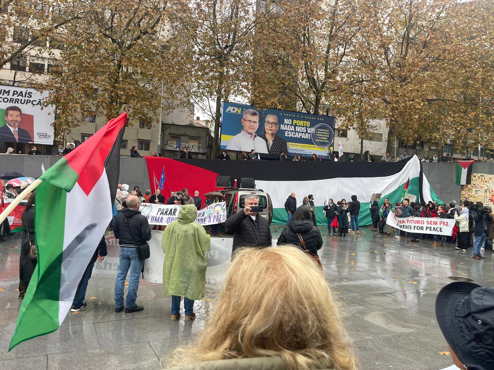 A muita chuva que caiu na tarde do sábado, dia 29 de Novembro, não demoveu várias centenas de pessoas de se manifestarem nas ruas do Porto, em solidariedade com a Palestina, exigindo o fim do genocídio e da destruição de edifícios, bem como o cessar-fogo efectivo e a ajuda humanitária sem entraves na faixa de Gaza, a par do termo da ocupação ilegal de terra palestina por parte de Israel, e da acção violenta, também ela completamente ilegal, e condenada internacionalmente, levada a cabo por colonos e milícias israelitas na Cisjordânia.