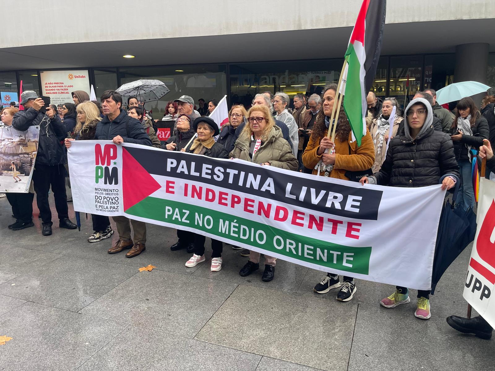 Expressiva manifestação de solidariedade com o povo palestino e de denúncia da conivência dos EUA e da UE com o estado genocida de Israel na tragédia de massas em curso, designadamente em Gaza, a iniciativa teve, na frente do desfile, os representantes principais das organizações convocantes: o coordenador da União dos Sindicatos do Porto – CGTP, Filipe Pereira, Elsa Silva, pelo MPPM, Manuela Branco Santos, pelo CPPC e Francisco Aguiar, pela associação juvenil Projecto Ruído.