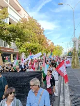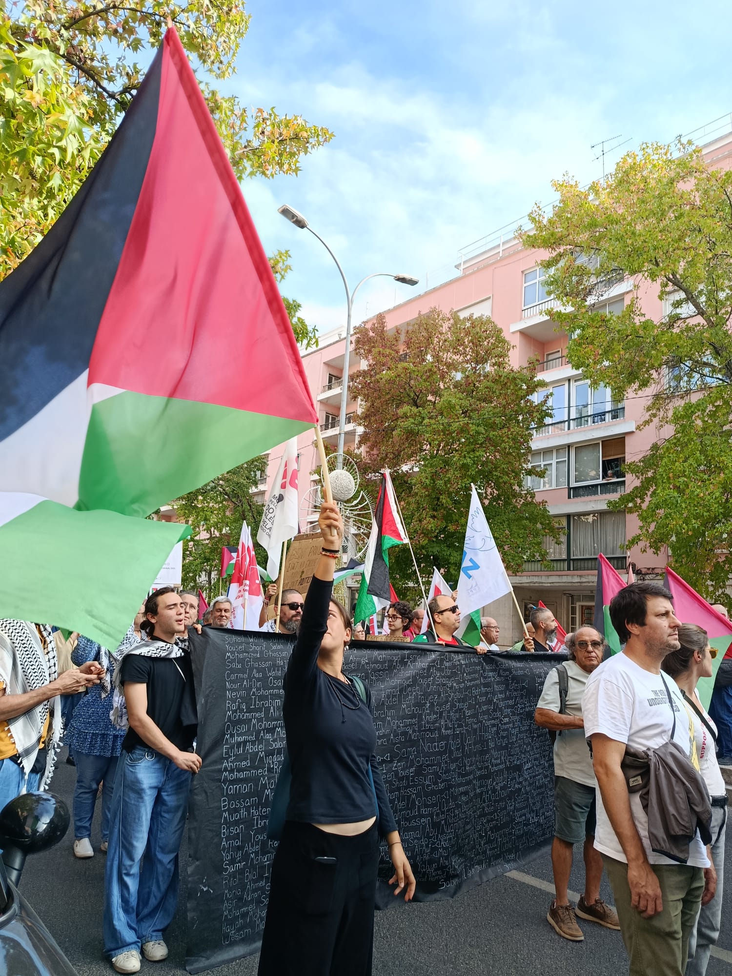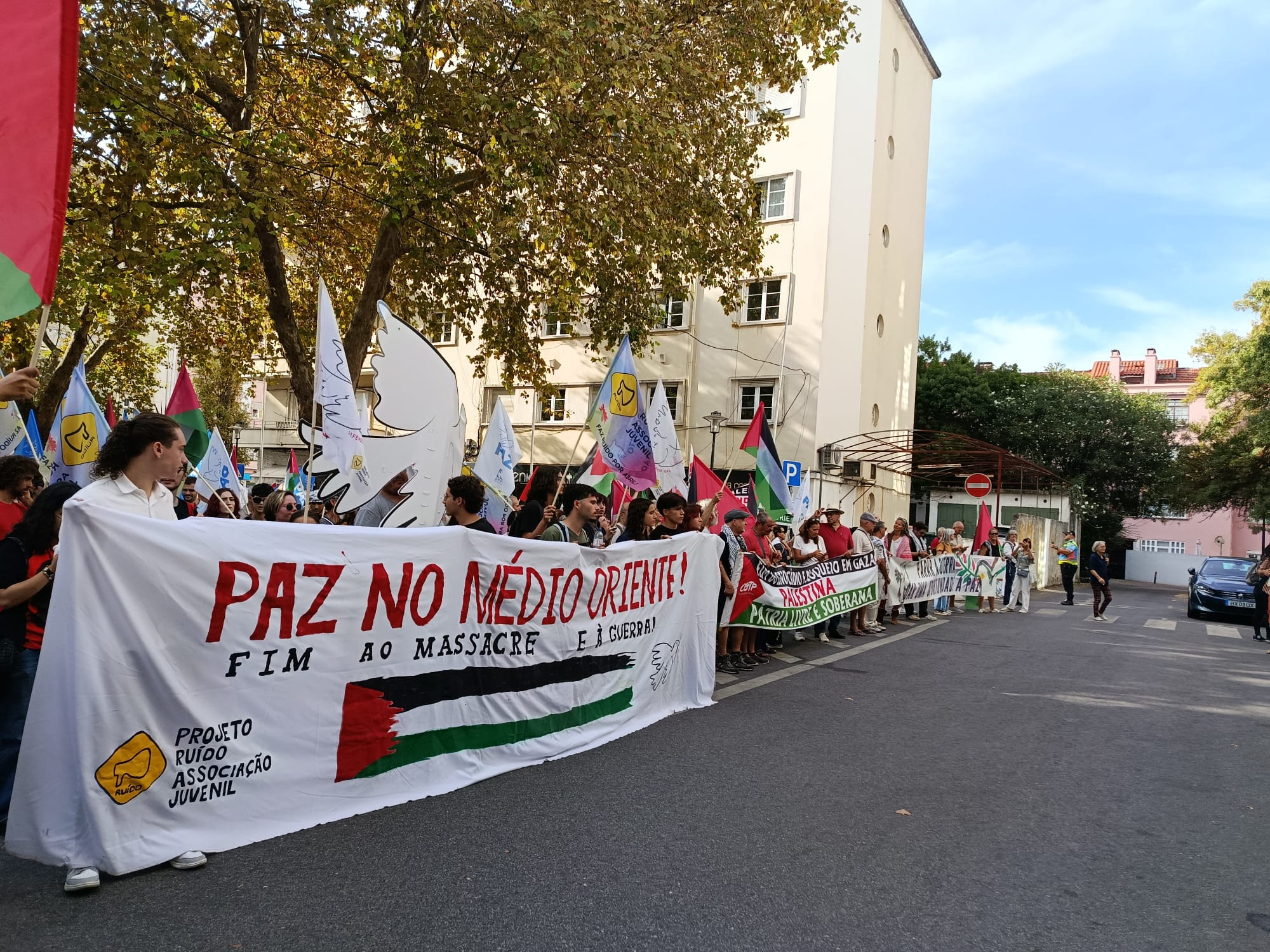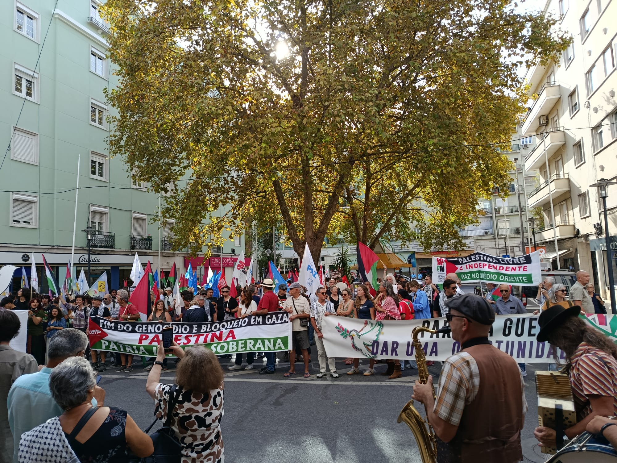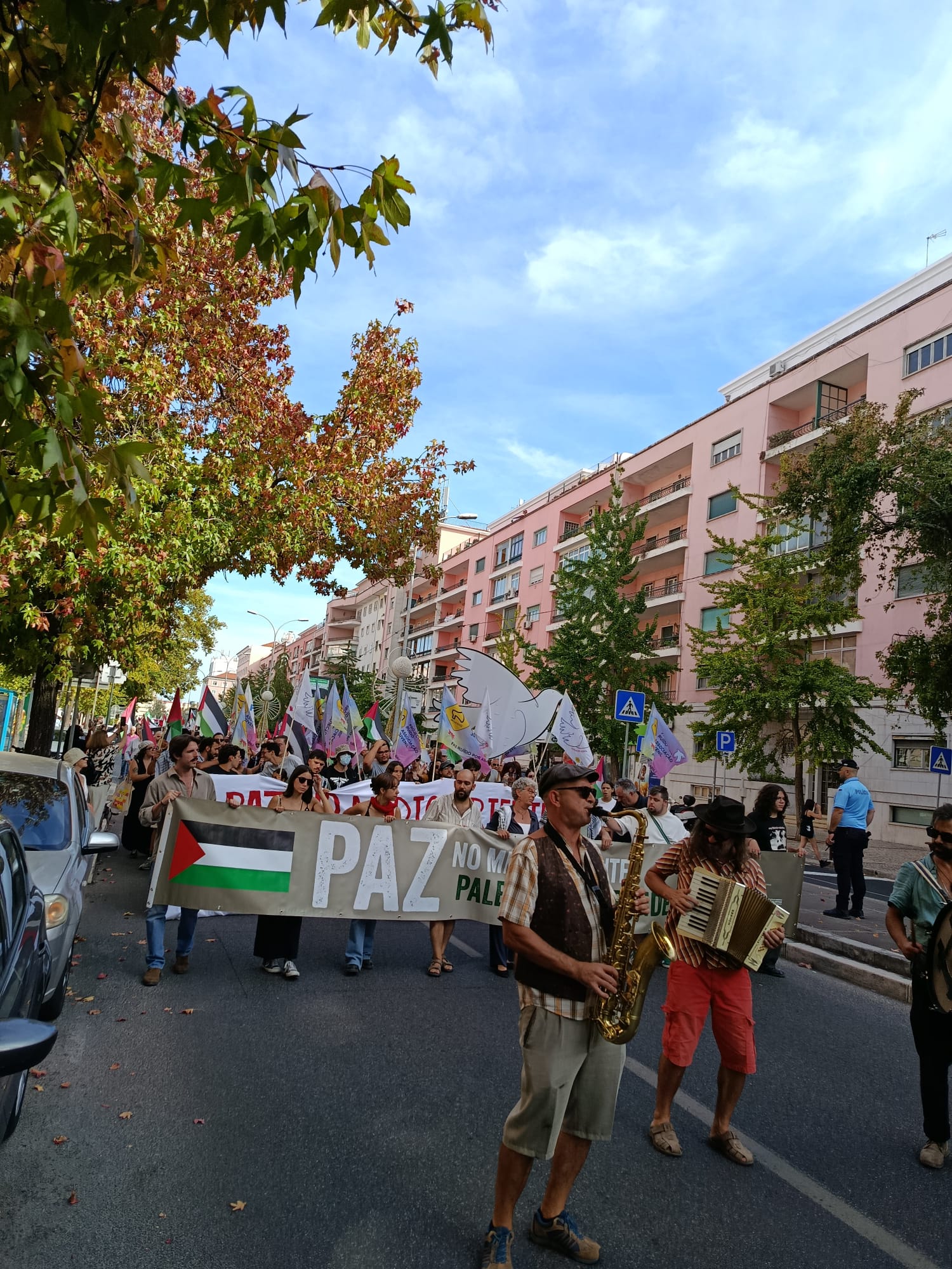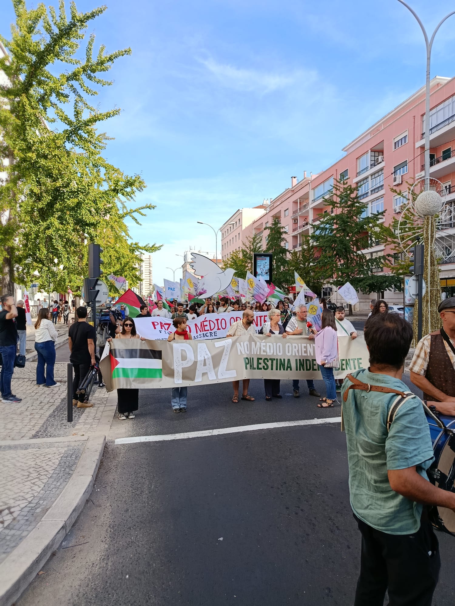 Neste sábado, 18 de Outubro, desfilámos em manifestação em Lisboa entre a Praça do Areeiro e o Fórum Lisboa onde teve lugar, com lotação esgotada, um Concerto pela Paz e de Solidariedade com a Palestina.