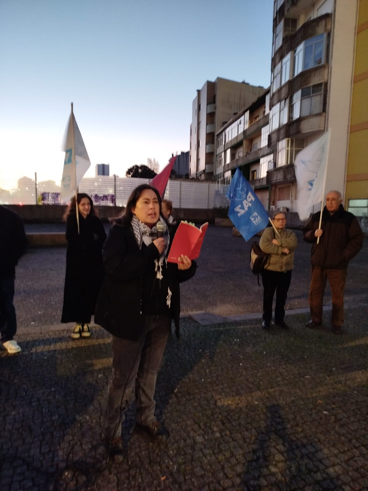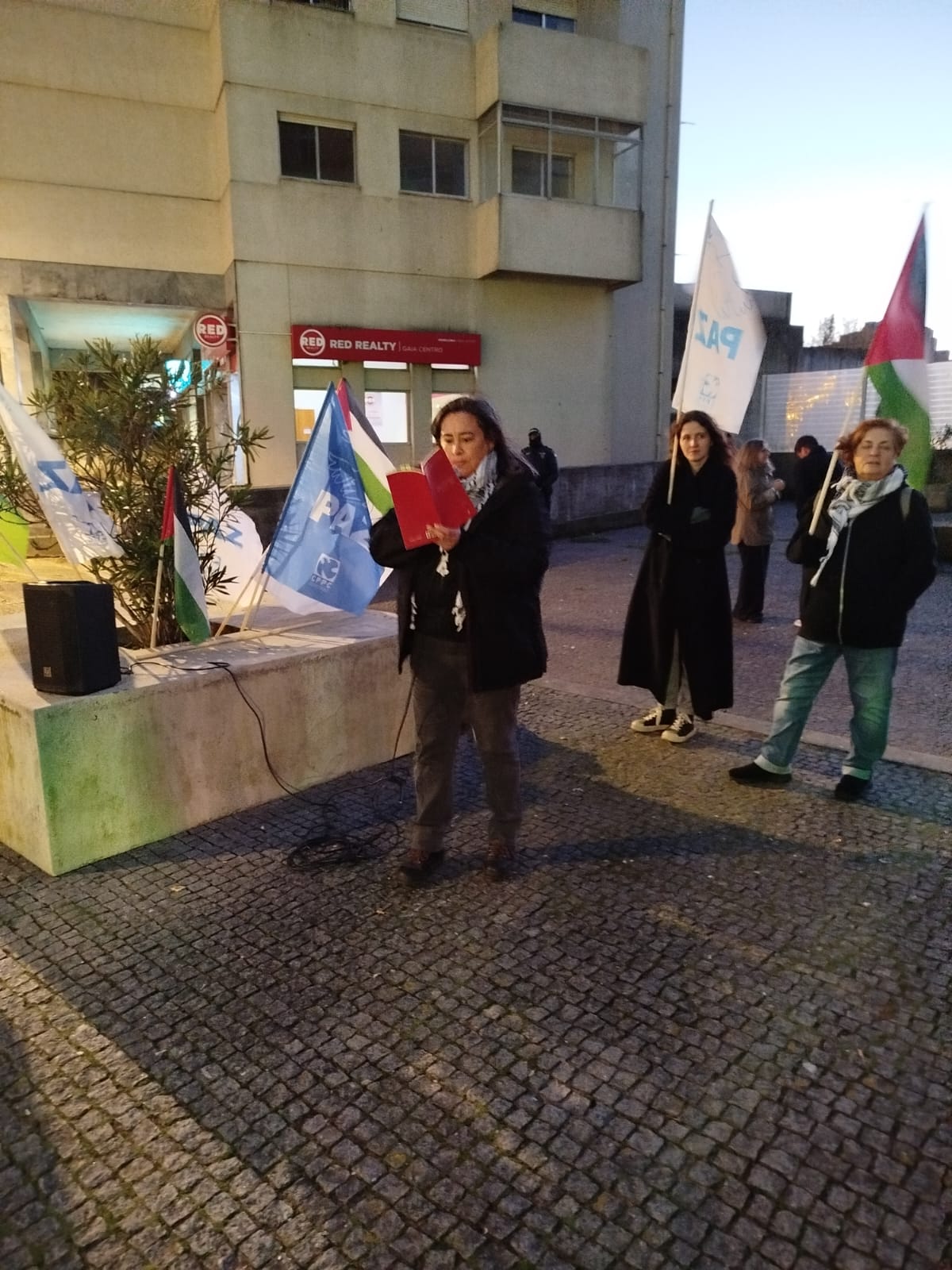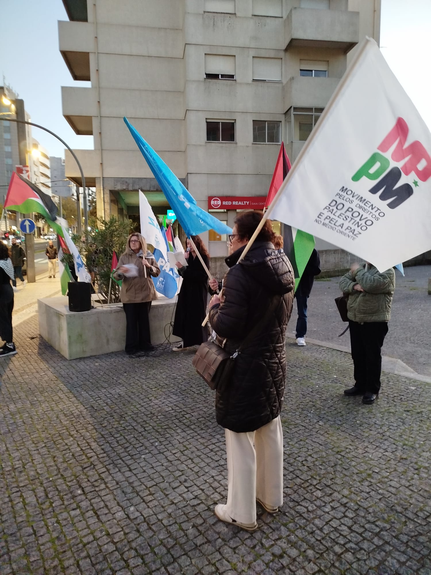 Dezenas de activistas juntaram-se em Gaia, junto à estação do metro João de Deus, na tarde de 21 de Novembro. Aí deram expressão, uma vez mais, à luta solidária e ao esclarecimento da população, no âmbito da campanha de Solidariedade com o Povo Palestino em curso, levada a cabo pelo MPPM, pelo CPPC, pela CGTP-IN e pela Associação Juvenil Projecto Ruído, e conducente à prevista grande manifestação nacional do dia 29 de Novembro, em Lisboa e no Porto.