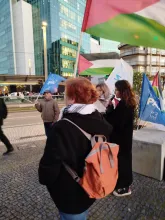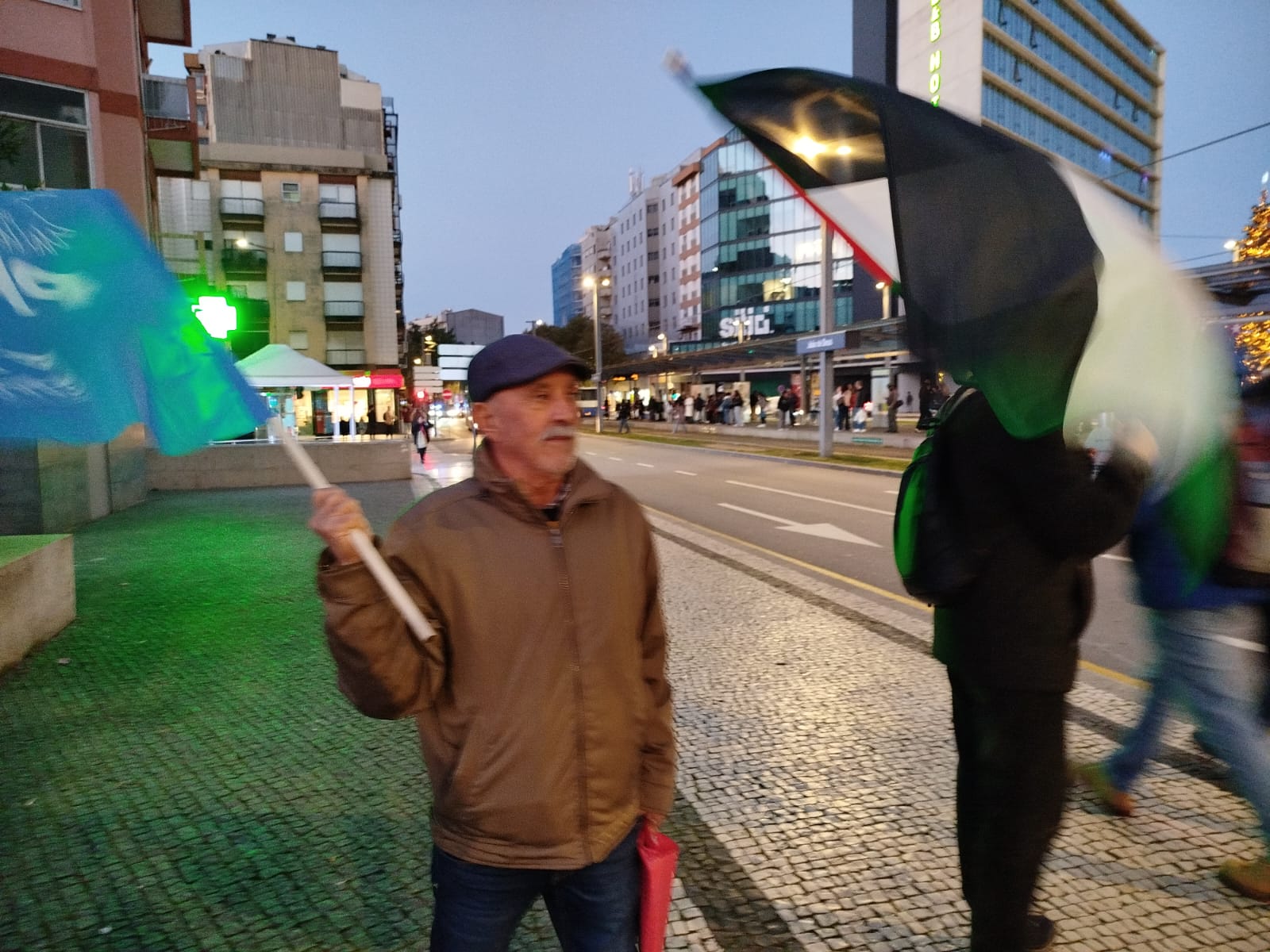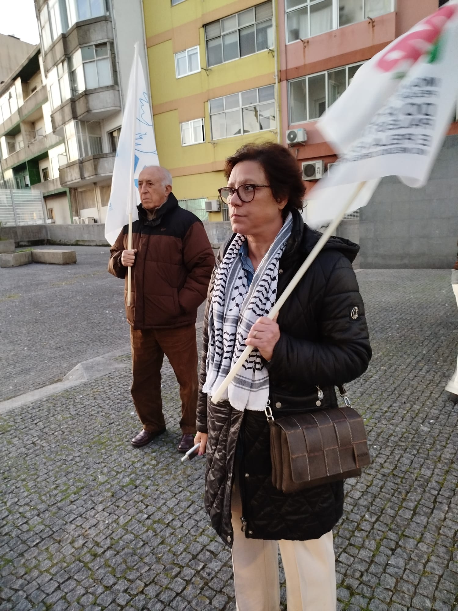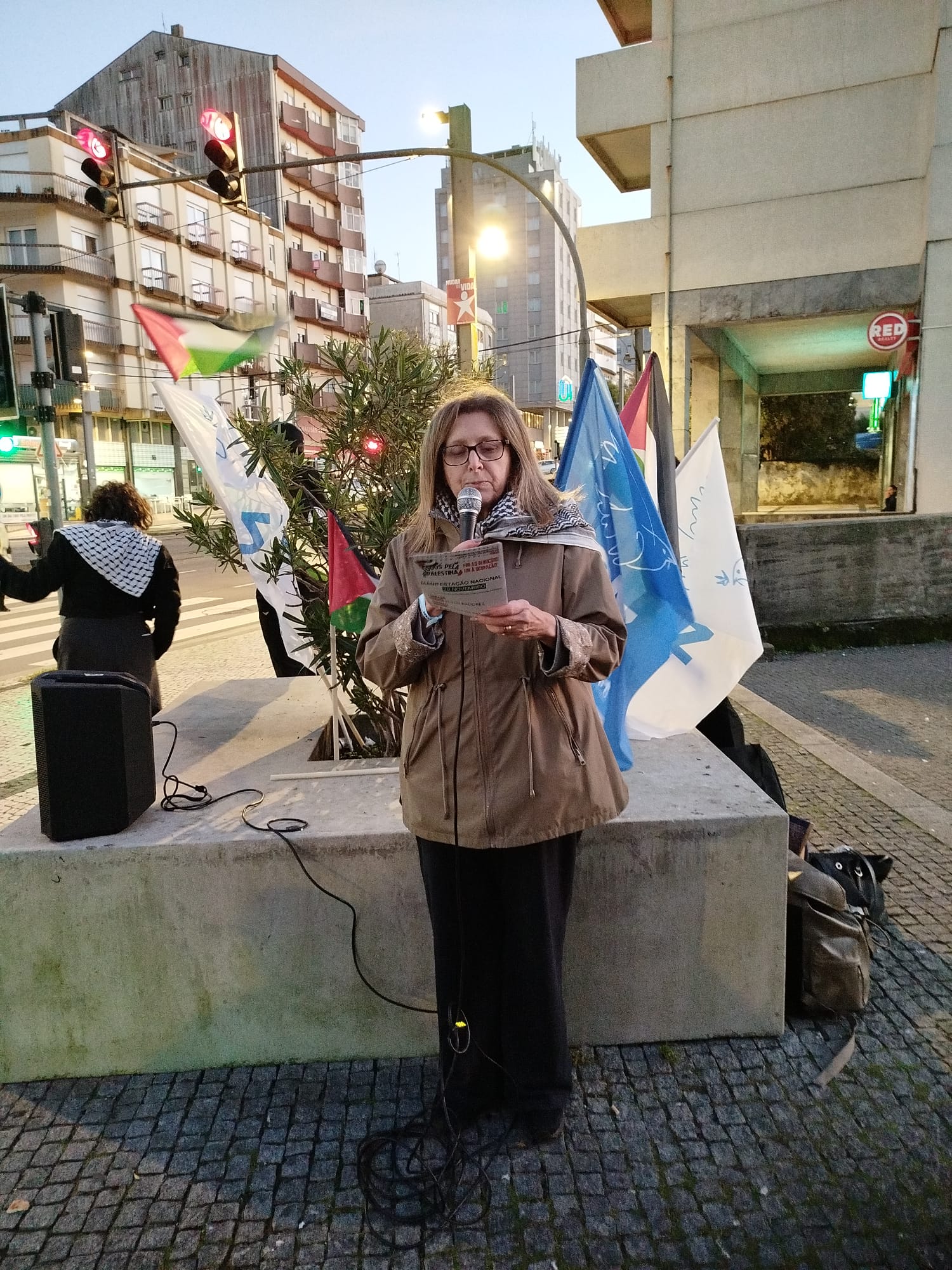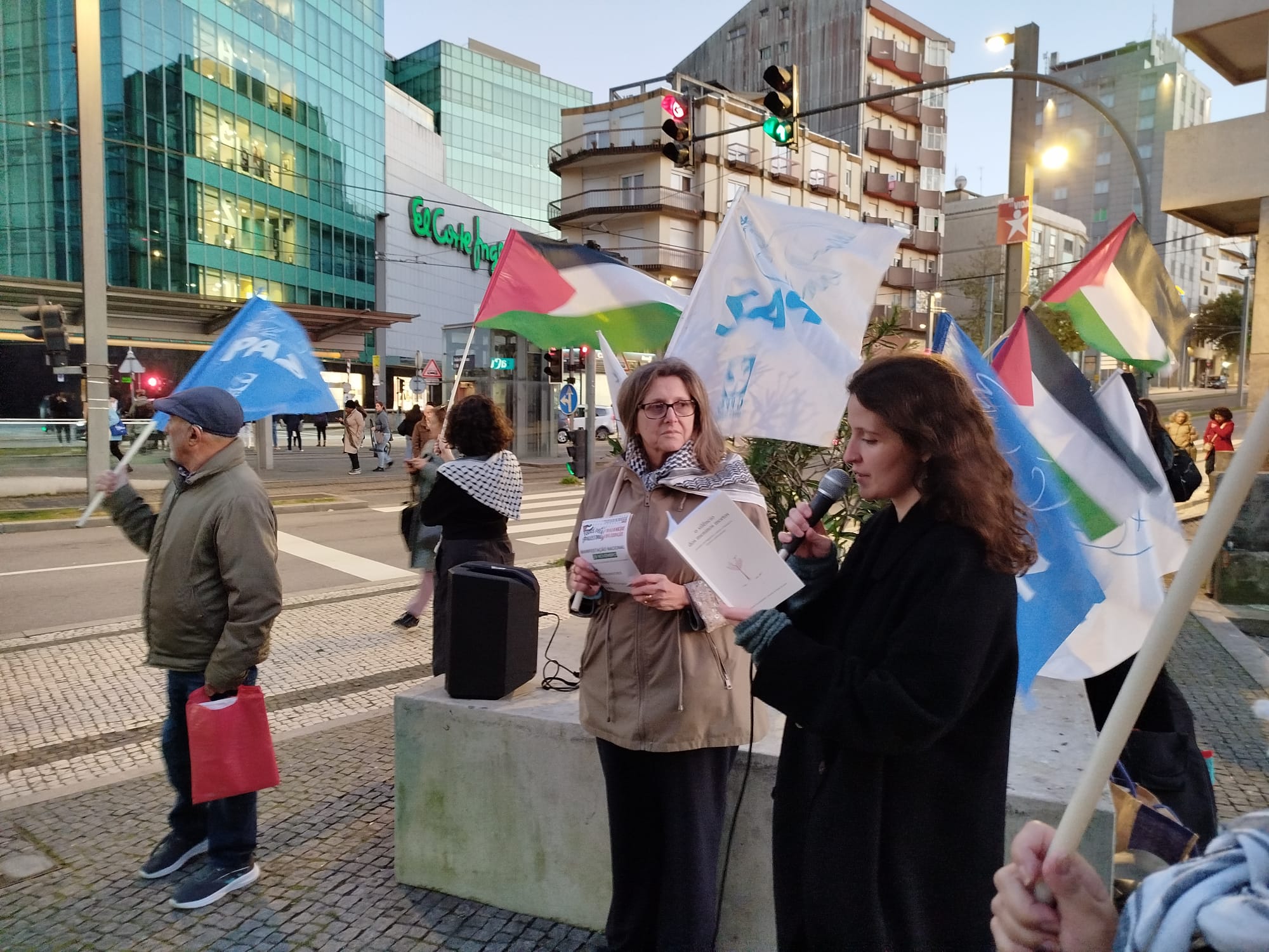 Foi o contexto ideal para o contacto com a população em hora de ponta e para a distribuição de documentos, convocando para a grande manifestação nacional do dia 29 de Novembro. No final das intervenções - que exigiram cessar fogo efectivo, acesso sem entraves à ajuda humanitária por parte da população de Gaza, fim dos ataques, destruições e ocupações na Cisjordânia, fim à ocupação da terra palestina por Israel, entre outros aspectos, e que, além do mais, reclamaram do governo o corte das relações comerciais, militares e culturais com o estado genocida -, escutaram-se as palavras de ordem: "Palestina vencerá!", "Paz no Médio Oriente, Palestina Independente!" e "Paz sim, guerra não!"