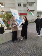 Com música palestina em fundo, esta tribuna contou com poemas lidos por Elsa Silva (em representação do MPPM), pela jovem escritora Iolanda Oliveira e ainda com intervenção de Manuela Branco Santos (do CPPC), em representação das quatro organizações promotoras.