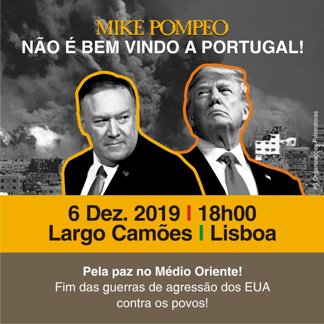 No dia 6 de Dezembro sairemos à rua para afirmar que Mike Pompeo não é bem vindo a Portugal e que rejeitamos a política da Administração norte-americana! Daremos voz à solidariedade com o povo palestino que luta pelos seus inalienáveis direitos nacionais e afirmaremos que não aceitamos a presença no nosso país de Benjamin Netanyahu.