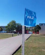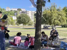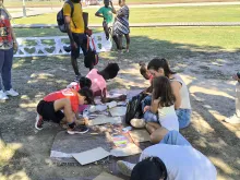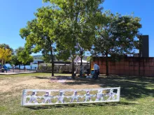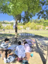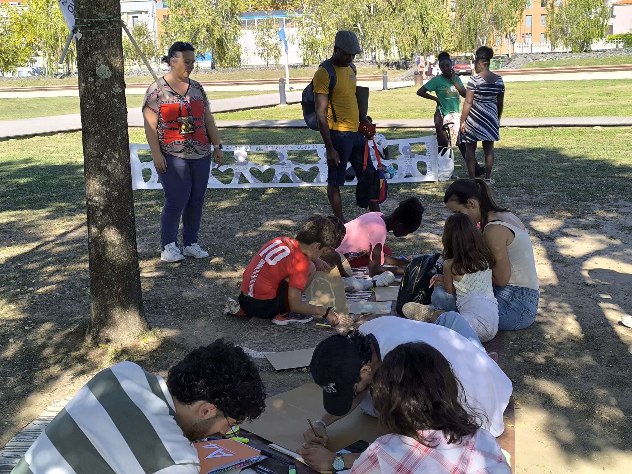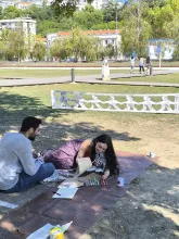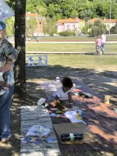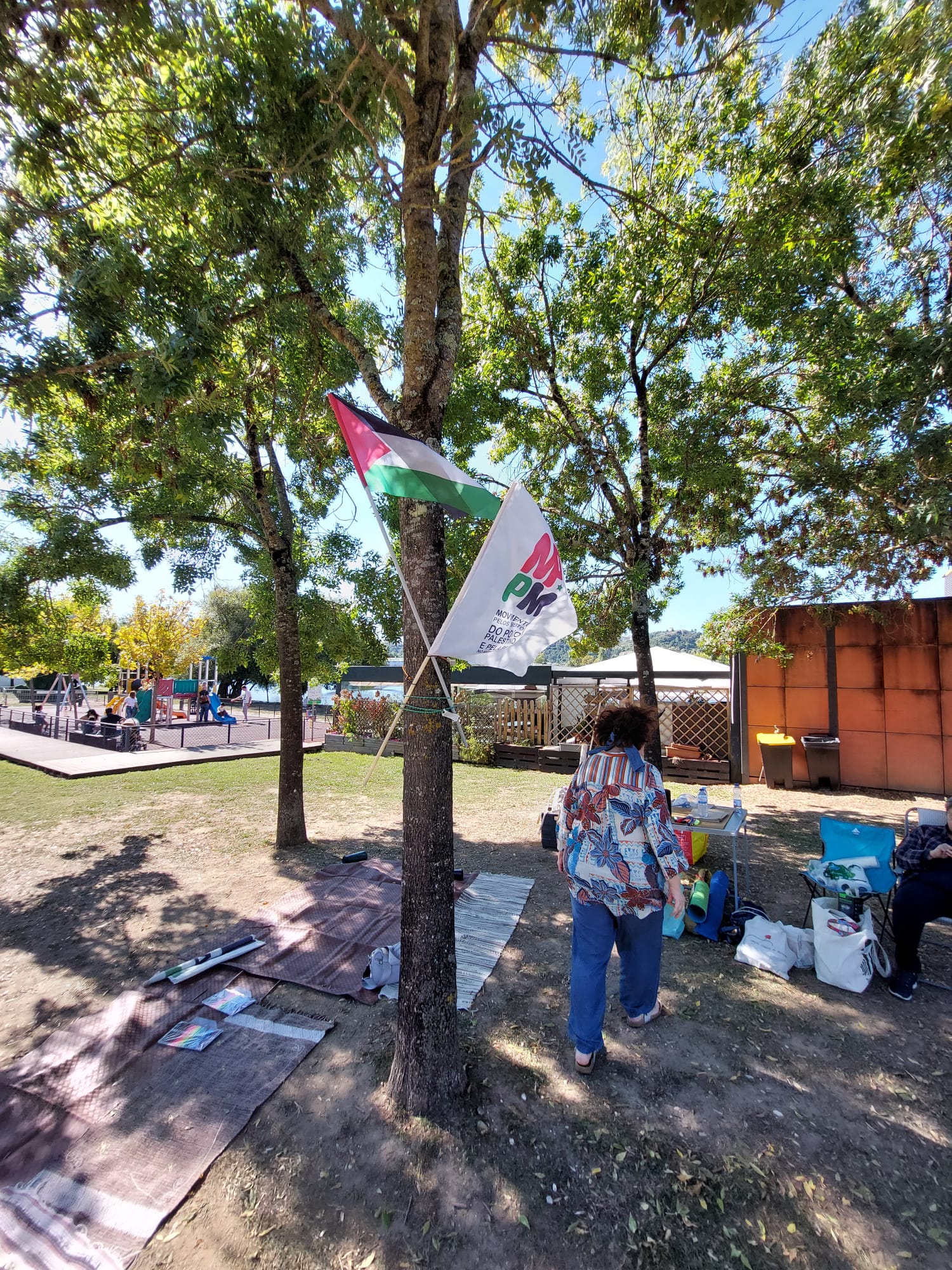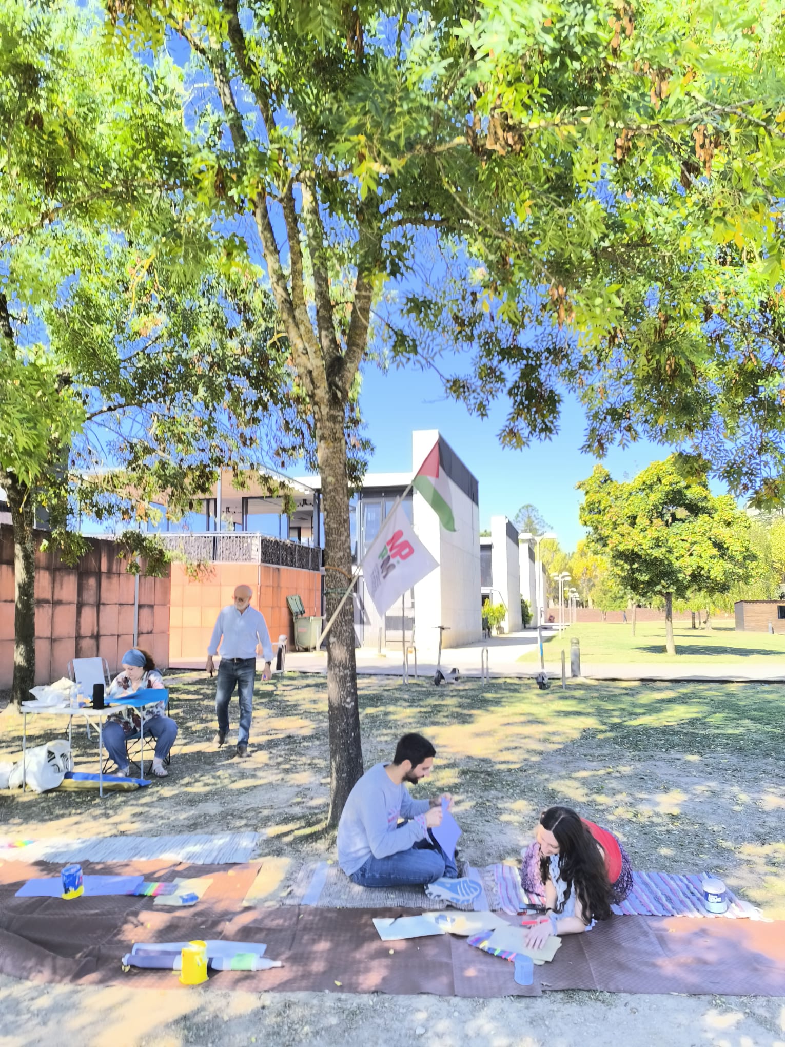O Parque Verde do Mondego, em Coimbra, acolheu hoje, entre o fim da manhã e meio da tarde, uma oficina de pintura de cartazes pela Palestina.