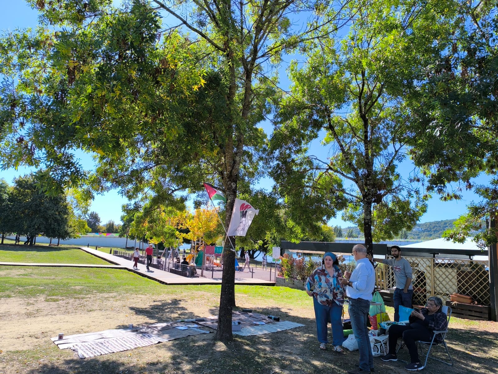 A iniciativa esteve integrada na campanha de solidariedade «Todos pela Palestina: Fim ao genocídio! Fim à ocupação!» que está a decorrer em várias cidades do país e vai culminar com manifestações nacionais em Lisboa e no Porto.