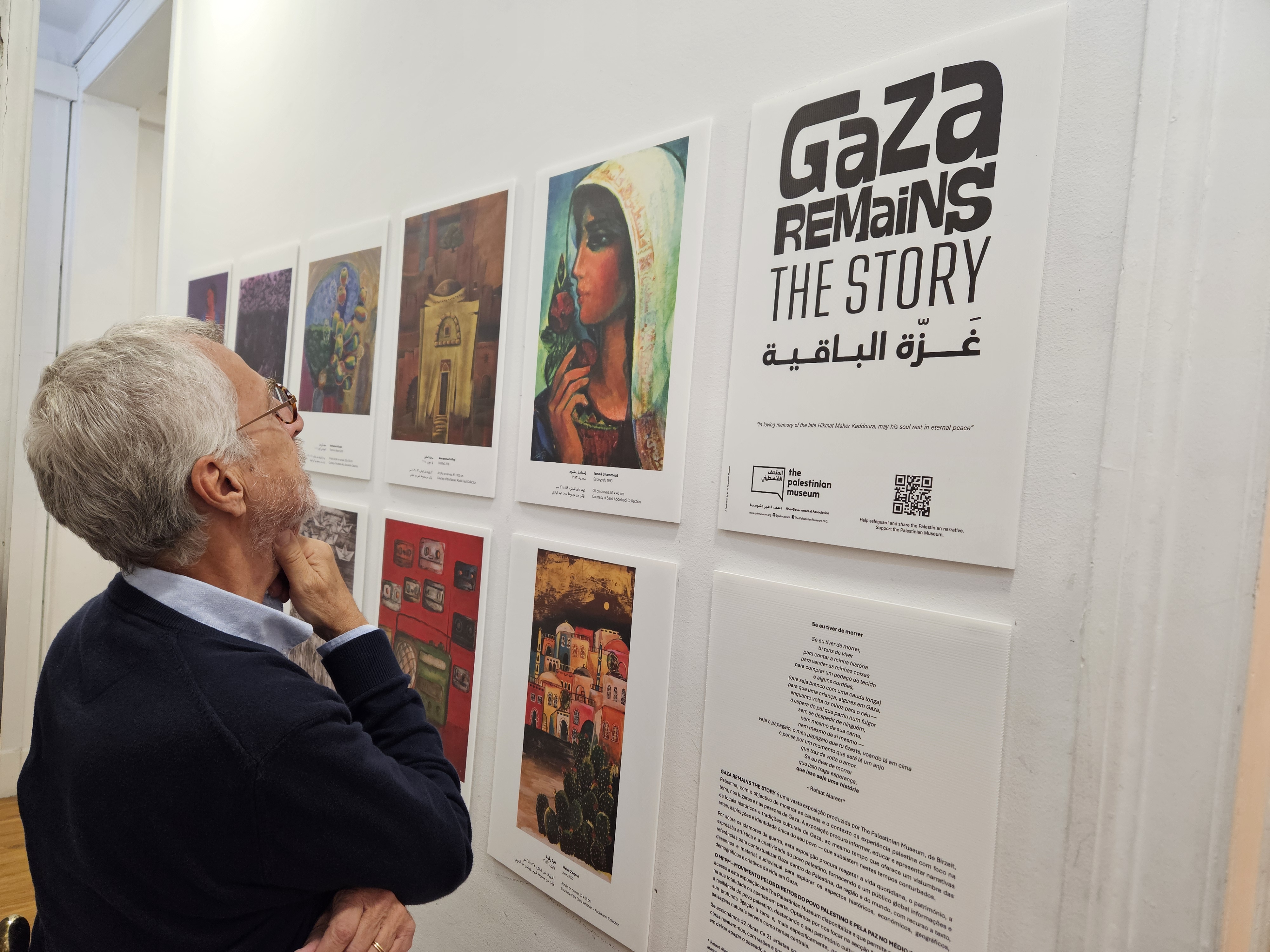 Partindo da vasta exposição «Gaza Remains the Story» produzida por The Palestinian Museum, com o objectivo de mostrar as causas e o contexto da experiência palestina com foco na terra, nos lugares e nas pessoas de Gaza, o MPPM focou-se na secção “Arte e Cultura”, que mostra a resiliência do povo palestino, destacando os seus patrimónios cultural e artístico como expressões da sua profunda ligação à terra e, mais especificamente, nas artes visuais, onde a terra e as suas paisagens naturais servem como temas centrais.