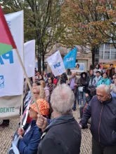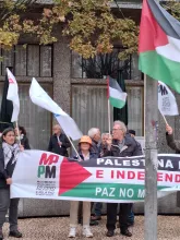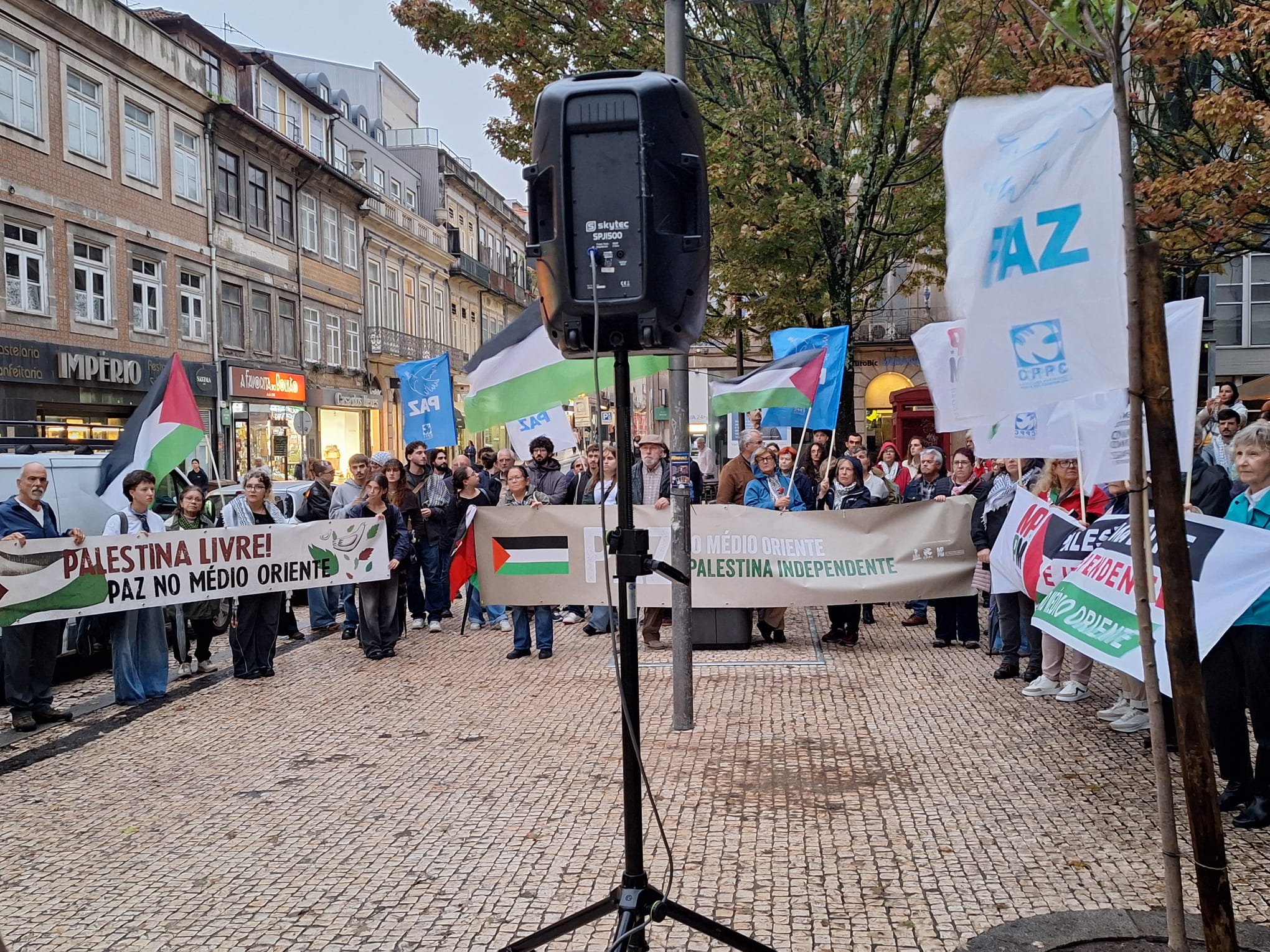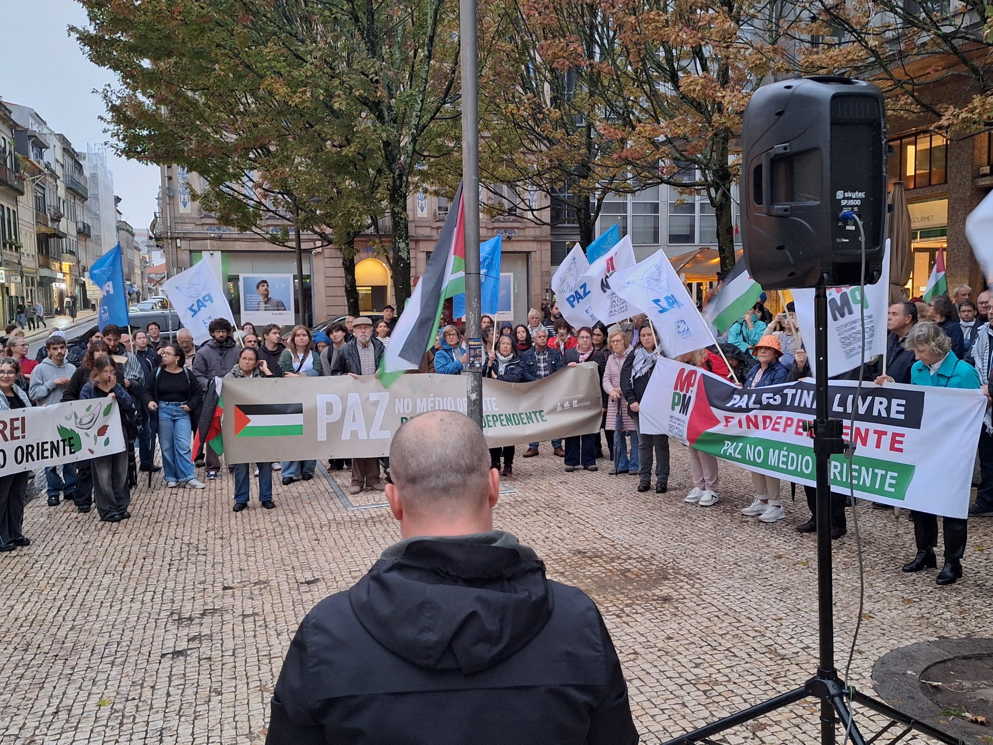 Mais de duzentas pessoas, sem contar com transeuntes em hora de ponta, participaram, no dia 22 de Outubro, em mais uma concentração-protesto realizada no Porto, no âmbito da “Campanha de Solidariedade com o Povo Palestino – Todos pela Palestina! Fim ao genocídio! Fim à ocupação!”, que está em curso por todo o país e que culminará a 29 de Novembro, Dia Internacional da Solidariedade com o Povo Palestino, com grande manifestações no Porto e em Lisboa.