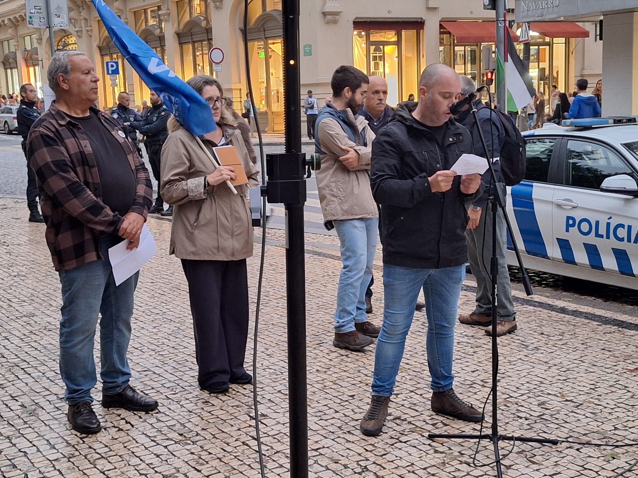 Francisco Aguiar, da associação juvenil Projecto Ruído iniciou as intervenções e assegurou as transições de palavra. Intervieram ainda Paulo Carvalho, pela União dos Sindicatos do Porto/CGTP, Álvaro Pinto pelo MPPM e Manuela Branco Santos, pelo Conselho Português para a Paz e a Cooperação. Entre outros aspectos, todos os intervenientes abordaram criticamente, do ponto de vista político, o actual “processo de Paz” e denunciaram a sua violação por Israel, com a complacência dos EUA e da EU.