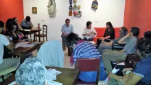 Neste ano da 2014, proclamado pelas Nações Unidas como Ano Internacional de Solidariedade com o Povo Palestino, a Apordoc – Associação pelo Documentário - acolheu uma proposta do MPPM para assinalar o Dia Mundial do Refugiado com uma sessão do Rossio ("um cineclube informal, irregular e itinerante") dedicada aos refugiados palestinos: porque dois em cada cinco refugiados em todo o mundo são palestinos; porque os refugiados palestinos são os que se encontram há mais tempo nesta situação; porque 7 milhões de palestinos, constituindo três quartos da população, são refugiados ou deslocados.A questão dos refugiados ocupa uma posição central no ideário do movimento nacional palestino. A esperança do regresso às casas e terras de que foram expulsos, em consequência da criação do estado de Israel e das sucessivas guerras que lhes foram impostas, passa imorredoura de geração em geração. Contam, para isso, com a força da solidariedade dos povos de todo o mundo para que levem a comunidade internacional a assumir as suas responsabilidades históricas viabilizando a constituição do Estado Palestino livre e com uma solução justa para a questão dos refugiados dando cabal cumprimento às sucessivas resoluções da Nações Unidas e respeitando o direito internacional e o direito internacional humanitário.A iniciativa teve lugar no dia 20 de Junho, à noite, no MOB Espaço Associativo, em Lisboa.O programa abriu com a exibição do documentário "Das Pedras à Liberdade" com montagem e edição de Paulo Vargues (A Barraca), que ilustra o trabalho do "Freedom Theatre", um projecto cultural localizado no campo de refugiados de Jenin, na Palestina Ocupada, que visa a formação de elementos da comunidade utilizando as artes como motor da mudança social.Micaela Miranda, uma actriz portuguesa que é professora no "Feedom Theatre", contextualizou o seu trabalho na situação dos habitantes do campo de refugiados, ilustrando a intervenção com fotografias obtidas por si e por jovens refugiados.Seguiu-se um debate moderado por Mónica Musoni e em que intervieram Hélder Costa (A Barraca), Micaela Miranda (Freedom Theatre) e Carlos Almeida (MPPM).A Apordoc - Associação pelo Documentário é uma associação cultural sem fins lucrativos. Fundada em 1998, o seu objectivo é estimular e promover uma cultura do documentário. A Associação pretende ser um espaço de encontro e discussão permanente para todos os interessados no documentário. No momento actual, a Apordoc tem procurado implantar-se na cidade de Lisboa e no restante território nacional de forma profunda e perene, em particular na área de programação de documentário e de projectos de literacia visual. Pretende-se assim cultivar e afirmar no espaço público outras frentes de trabalho e de relação com a sociedade portuguesa e com parceiros internacionais, para além dos eventos concentrados em poucos dias – como o DocLisboa - e que têm sido as principais marcas da Apordoc nos seus anos de existência.O MPPM é uma Organização Não Governamental, democrática e apartidária, de solidariedade internacional, acreditada pelo Comité das Nações Unidas para o Exercício dos Direitos Inalienáveis do Povo Palestino (Deliberação de 17.09.2009) que visa promover, no plano da opinião pública, em conformidade com as resoluções das Nações Unidas, o apoio à criação nos territórios da Palestina ocupados por Israel desde 1967, de um Estado da Palestina, independente e soberano, com uma solução justa para a questão de Jerusalém e para a questão dos refugiados palestinos, bem como o apoio ao estabelecimento de uma paz global e duradoura no Médio Oriente. No quadro dos seus objectivos, procura mobilizar a opinião pública para uma efectiva solidariedade moral, política, cultural, material e humanitária com os povos que, no Médio Oriente, são afectados na sua segurança e dignidade, e nos seus inalienáveis direitos à autodeterminação, à independência nacional, à democracia e à paz, desenvolvendo relações de colaboração e de diálogo com personalidades, instituições ou organizações que se dedicam às causas da justiça e da paz entre os povos.O Freedom Theatre foi inspirado num único projeto, "Cuidado e Aprendizagem", que usou o Teatro e a Arte para abordar o medo crónico, a depressão e a perturbação do stress pós-traumático das crianças do Camp Refugiados de Jenin. Iniciado durante a 1ª Intifada. Foi construído tendo por inspiração o legado de Arna, pelo seu filho Juliano Mer Khamis. O Freedom Theatre está a desenvolver uma Comunidade artística criativa e entusiástica no Norte do West Bank. para além de dar ênfase ao profissionalismo e inovação, o objetivo do Teatro é também habilitar a juventude e as mulheres da Comunidade a explorar o potencial das artes como um importante catalisador de mudança social.A Barraca iniciou a sua actividade com "A cidade dourada", em 1976. Um já longo percurso que levou ao estudo da História e da Cultura, que conduziu a uma acção-testemunho do nosso tempo, e que a insere num campo de teatro internacional que, à falta de designação mais correcta e precisa, se pode definir por popular. Teatro popular, porque sem ser etnográfico ou museológico, estuda e aprofunda as metáforas tradicionais populares, recorre à imaginação, ao rigor da simplicidade, ao poético, e ao mágico. Teatro popular também, porque se quer comunicativo e interveniente, porque acredita na evolução e no progresso, porque gosta de fazer rir e de se divertir. E ainda teatro popular porque gosta do abraço do público, e lhe quer dar afectividade de calor. Para que haja mais público, melhor público e melhor teatro.