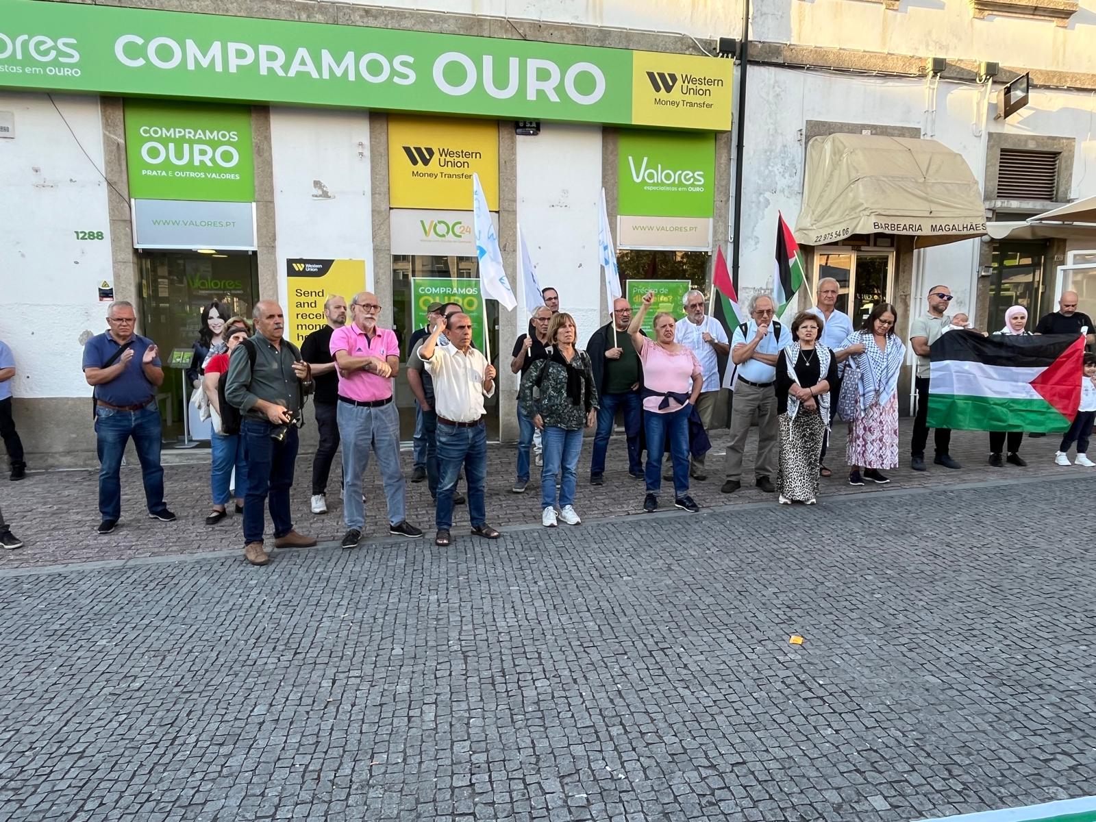 Na tarde desta quinta-feira, 25, realizou-se no Largo da Estação, em Ermesinde, um Acto Público integrado na campanha de solidariedade com o povo palestino «Todos pela Palestina! Fim ao genocídio! Fim à ocupação!» promovida por CPPC, CGTP-IN, MPPM e Projecto Ruído.