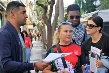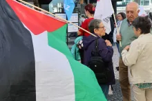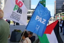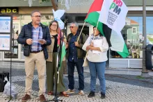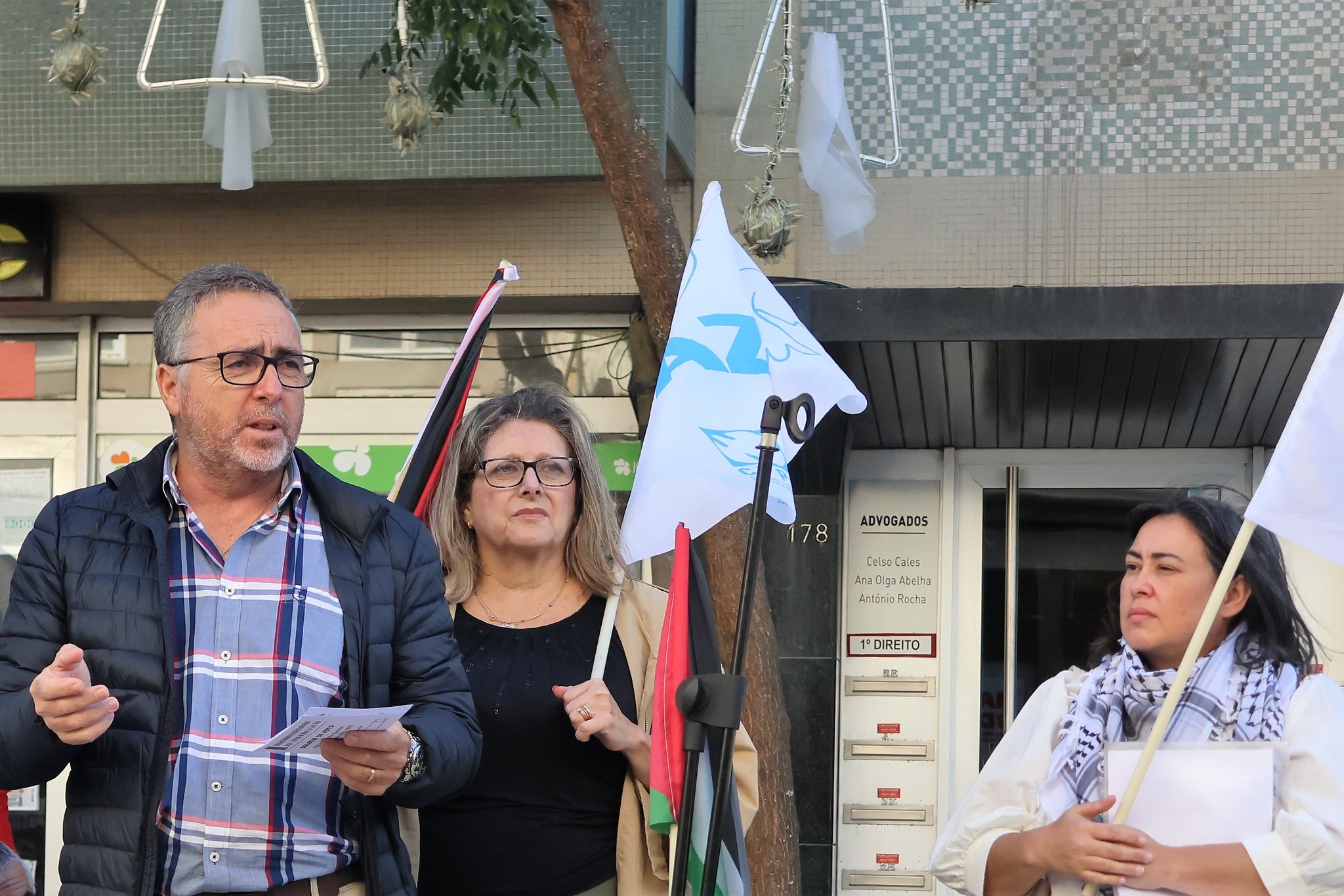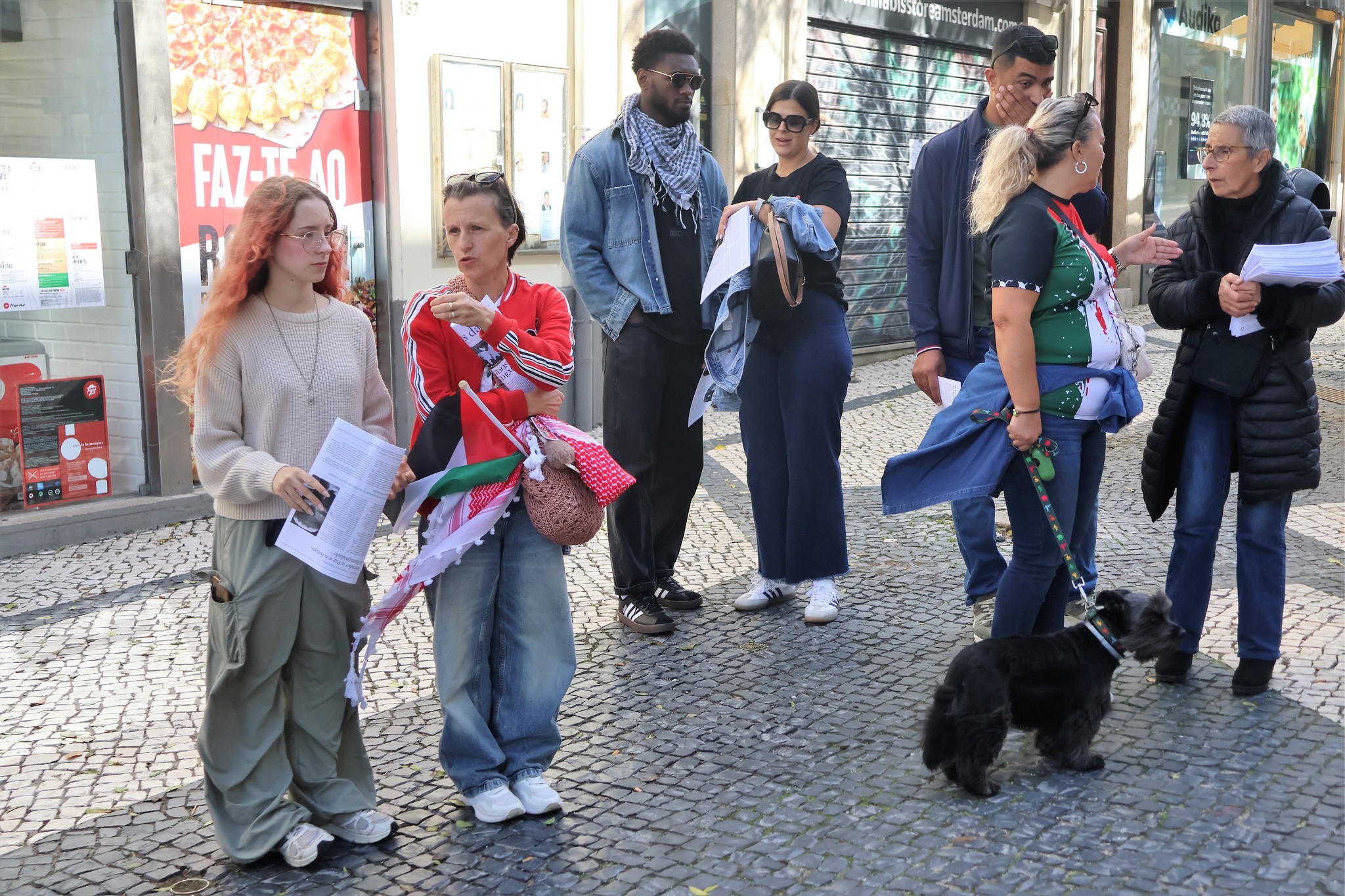 Na manhã deste domingo, 28 de Setembro, realizou-se na Rua 19, em Espinho, um Acto Público integrado na campanha de solidariedade com o povo palestino «Todos pela Palestina! Fim ao genocídio! Fim à ocupação!» promovida por CPPC, CGTP-IN, MPPM e Projecto Ruído.