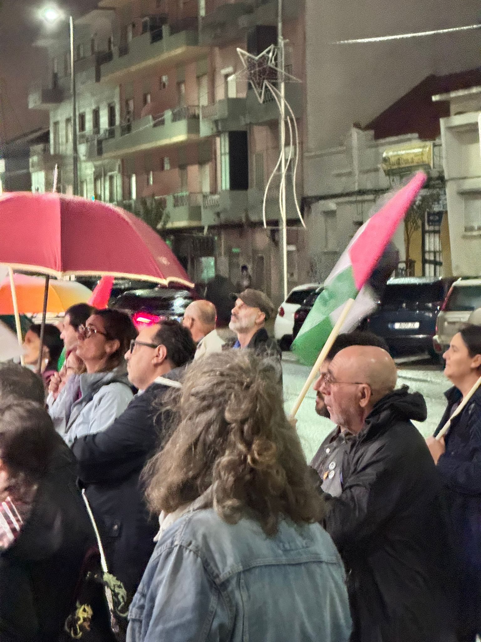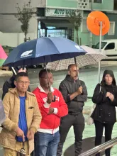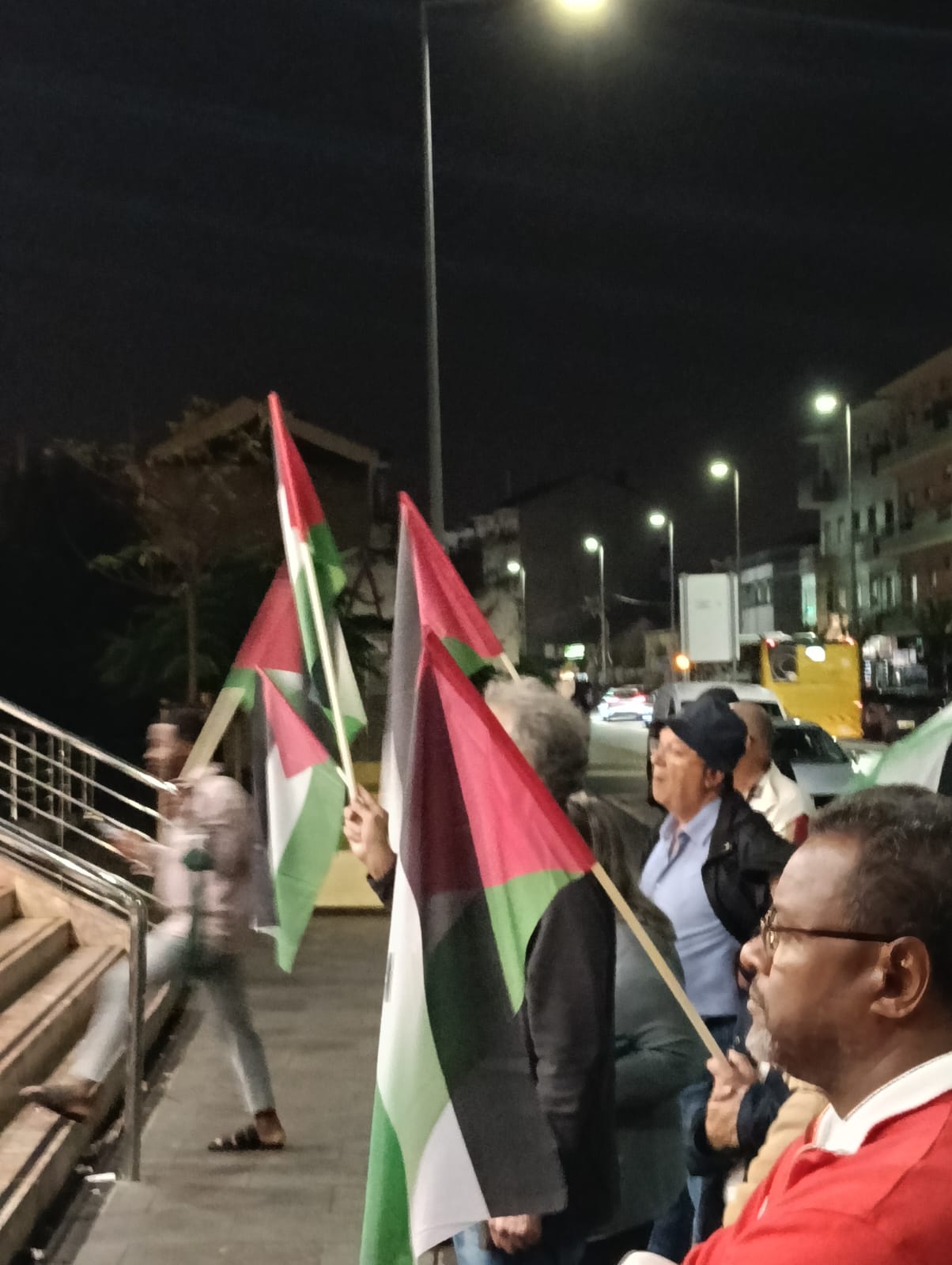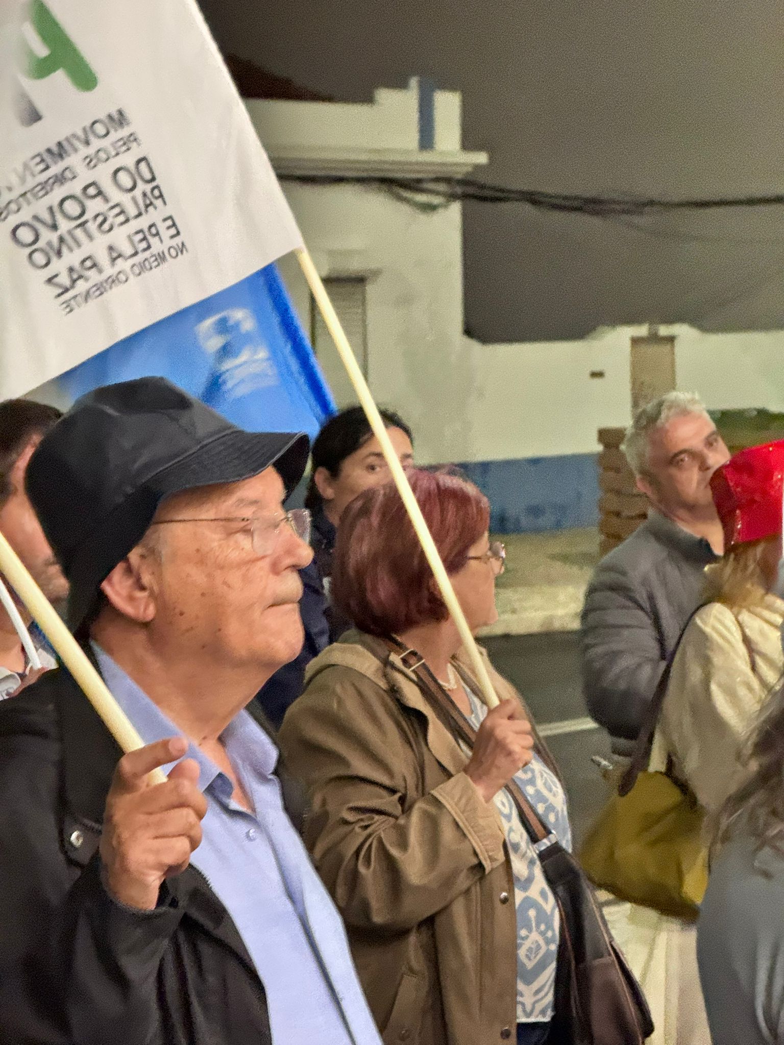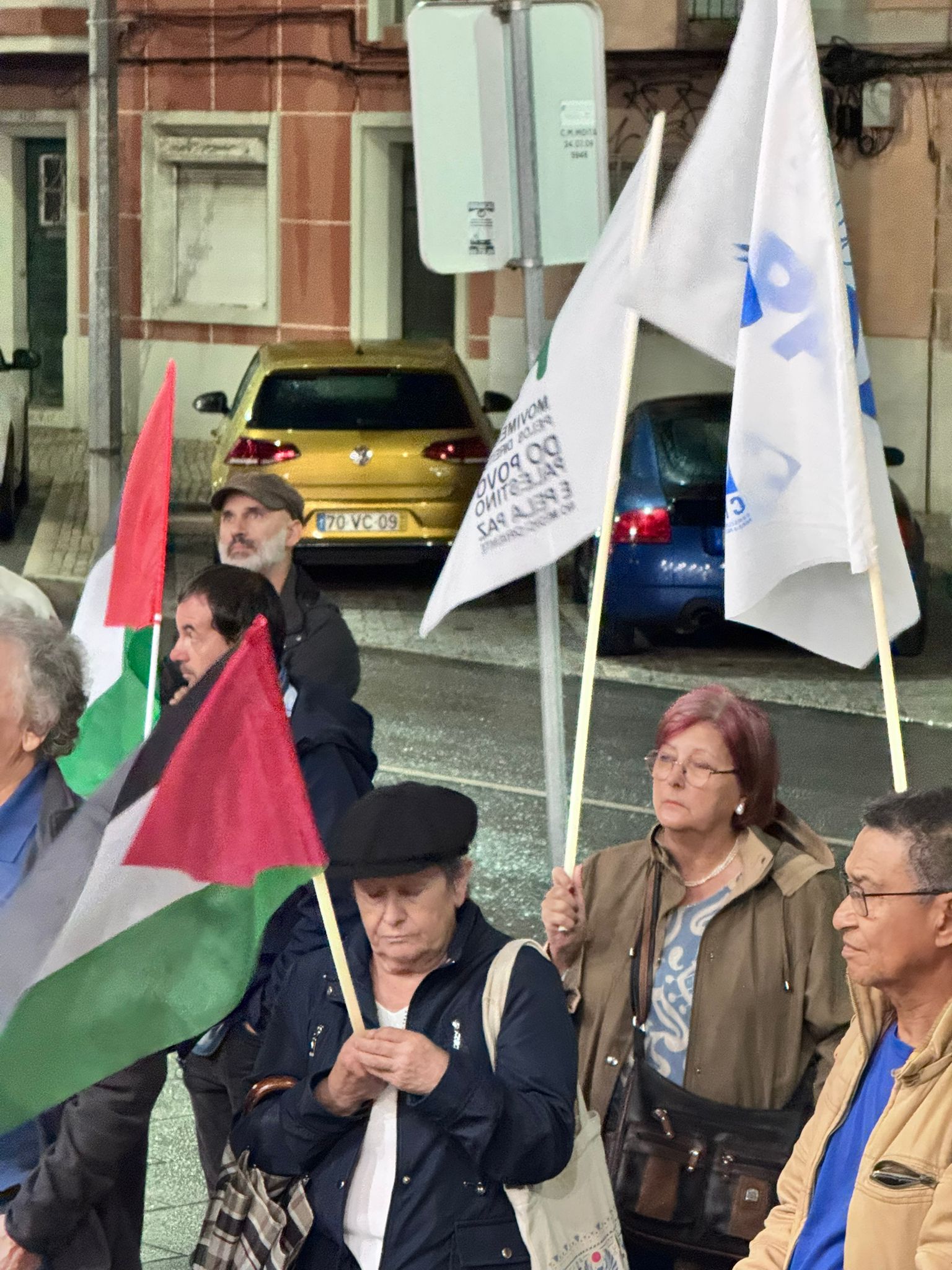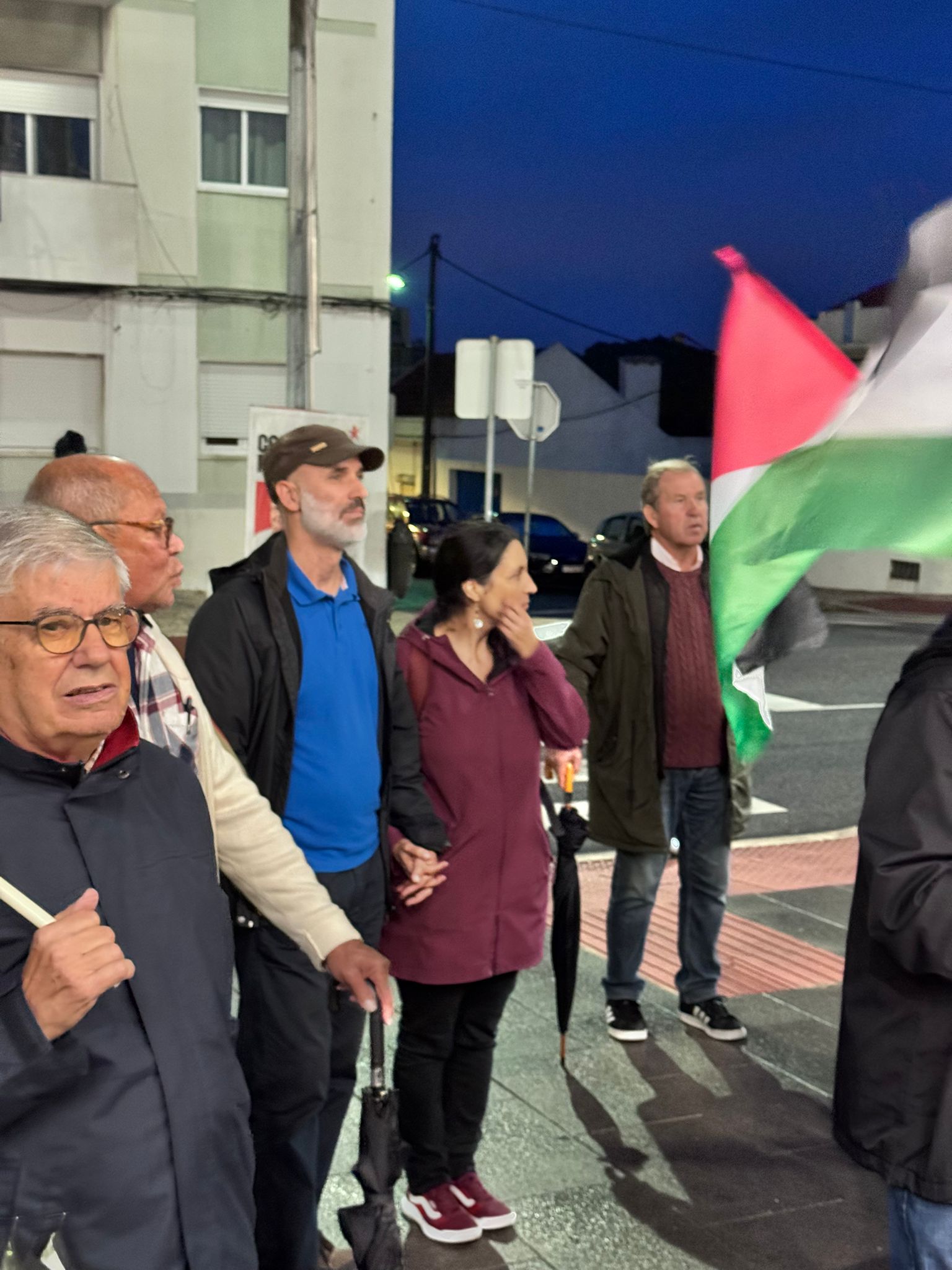O mau tempo não impediu dezenas de pessoas de se reunir na Baixa da Banheira, junto à estação da CP, na sexta-feira, 31 de Outubro, para manifestar a sua solidariedade com o povo palestino e reclamar o fim do genocídio em Gaza.
