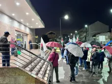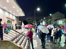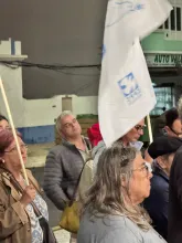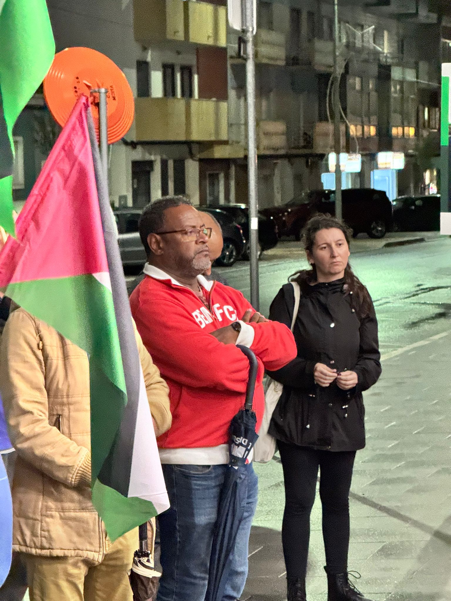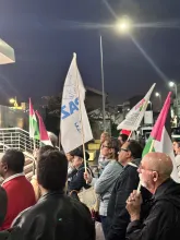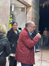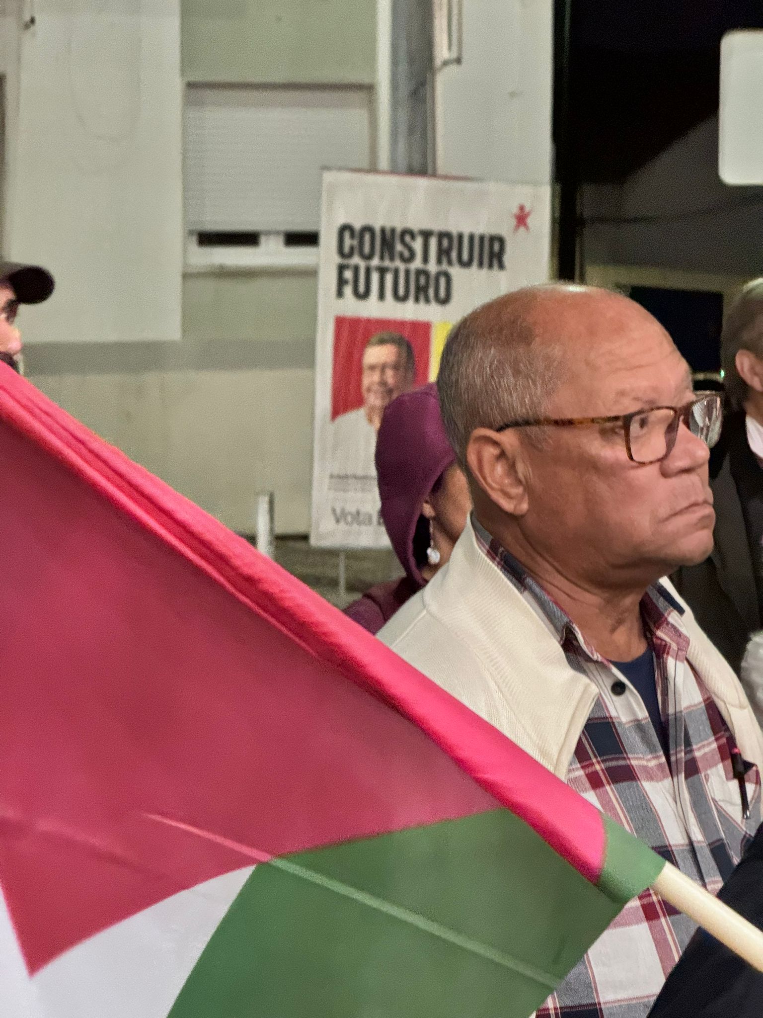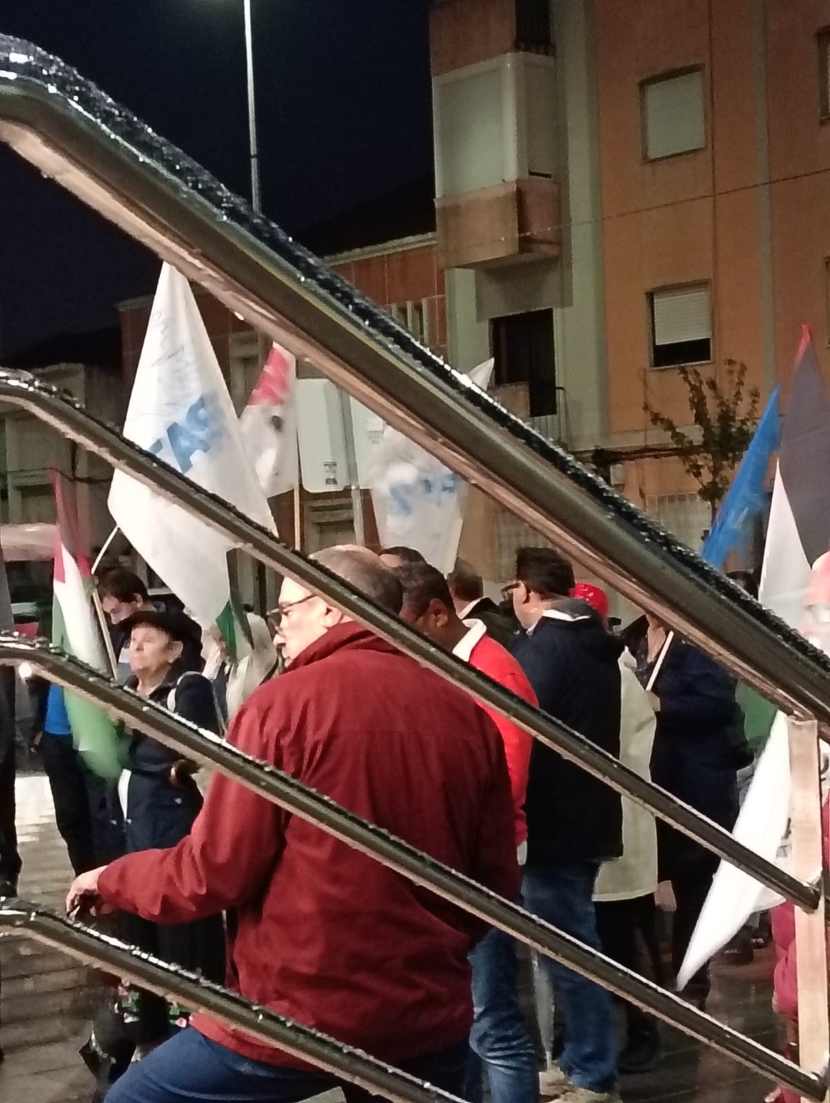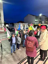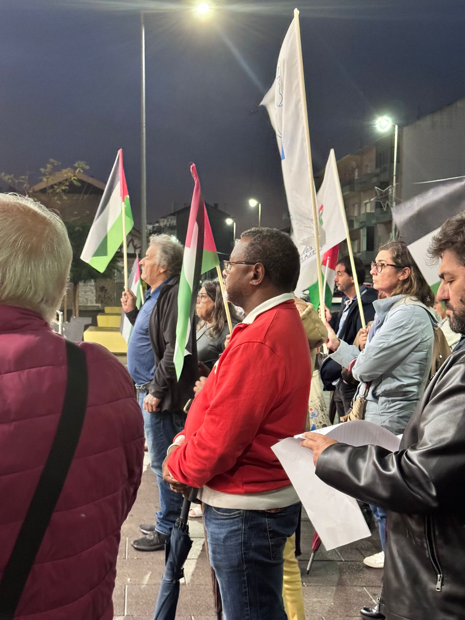 O mau tempo não impediu dezenas de pessoas de se reunir na Baixa da Banheira, junto à estação da CP, na sexta-feira, 31 de Outubro, para manifestar a sua solidariedade com o povo palestino e reclamar o fim do genocídio em Gaza.