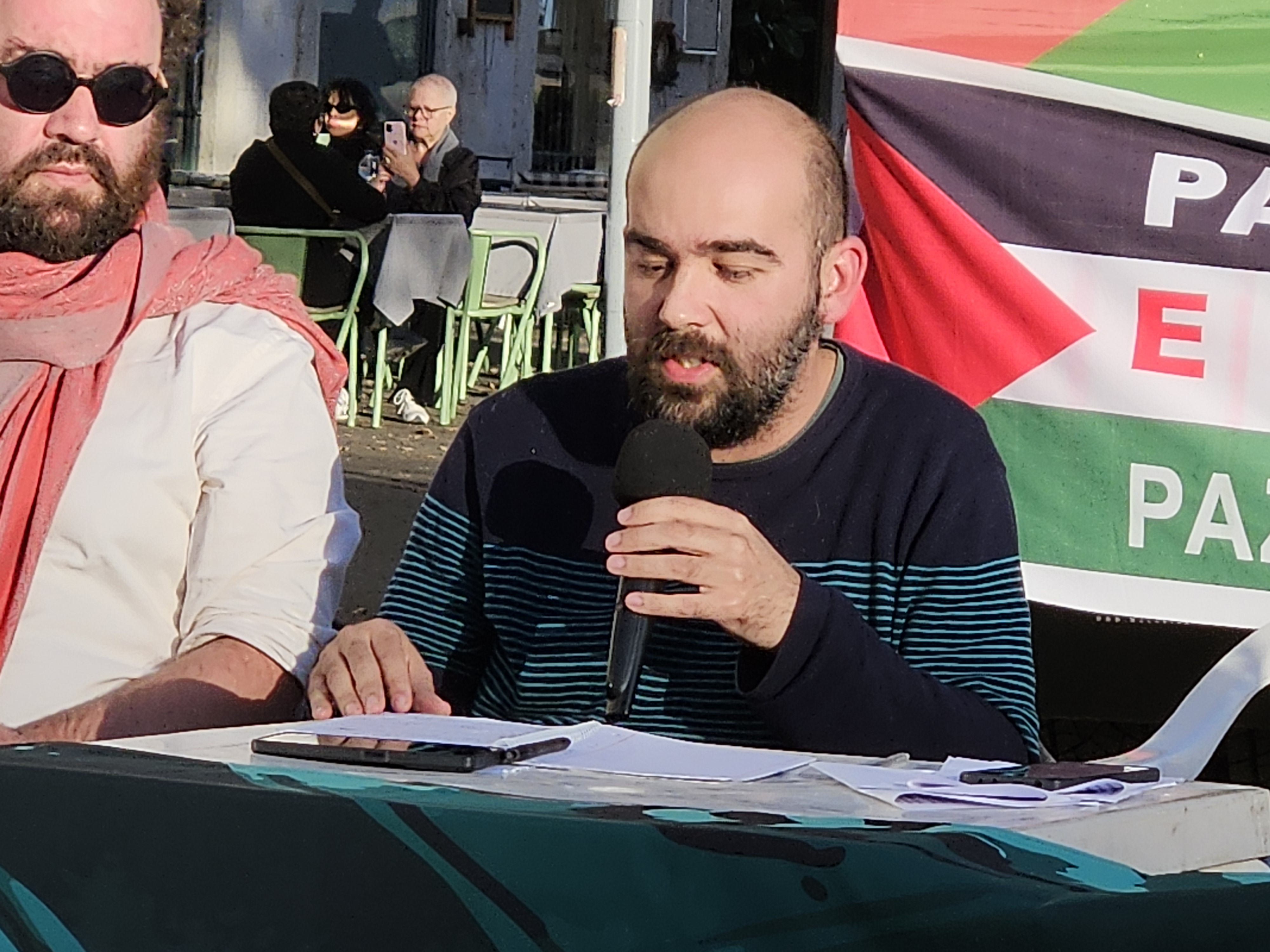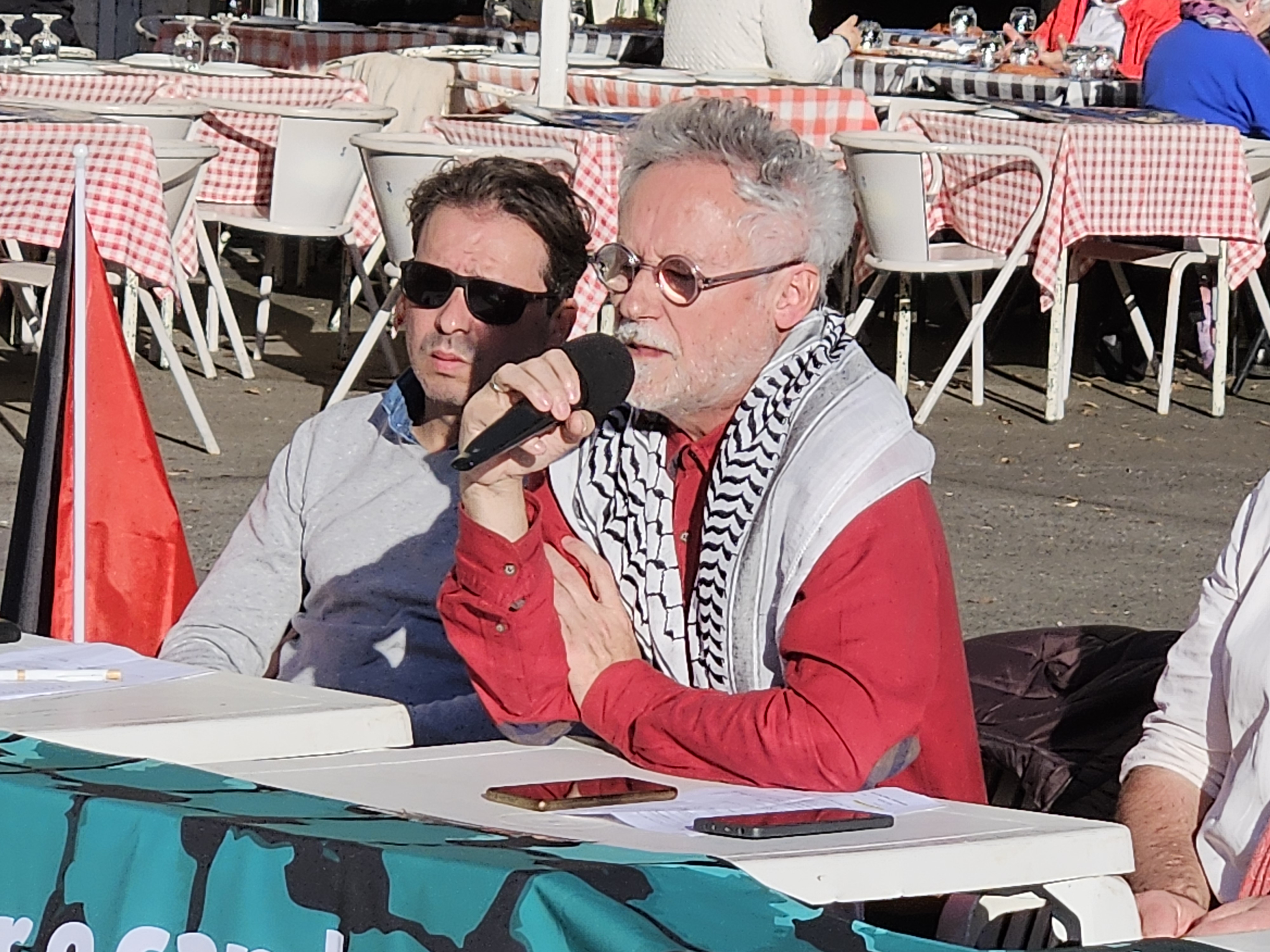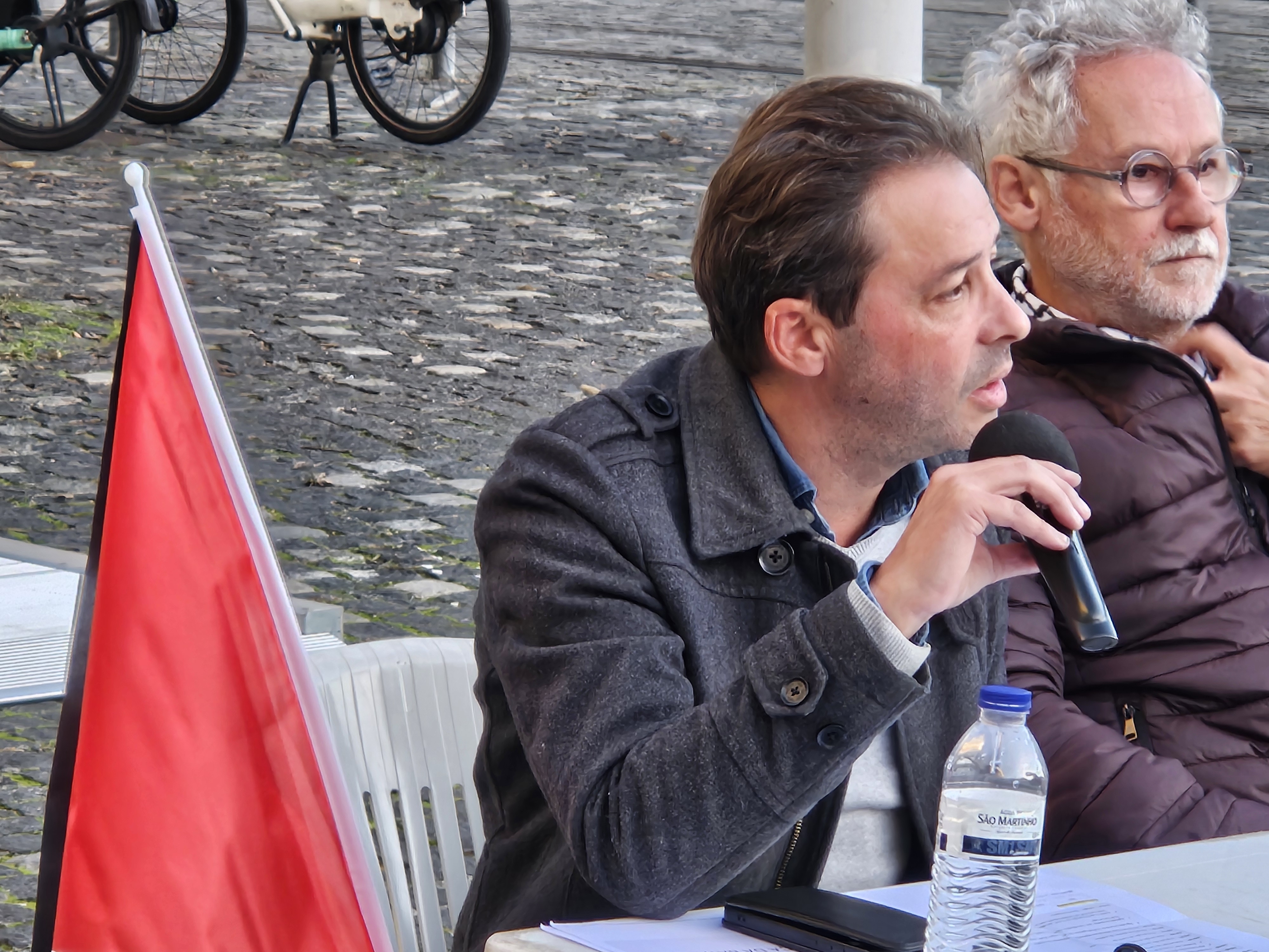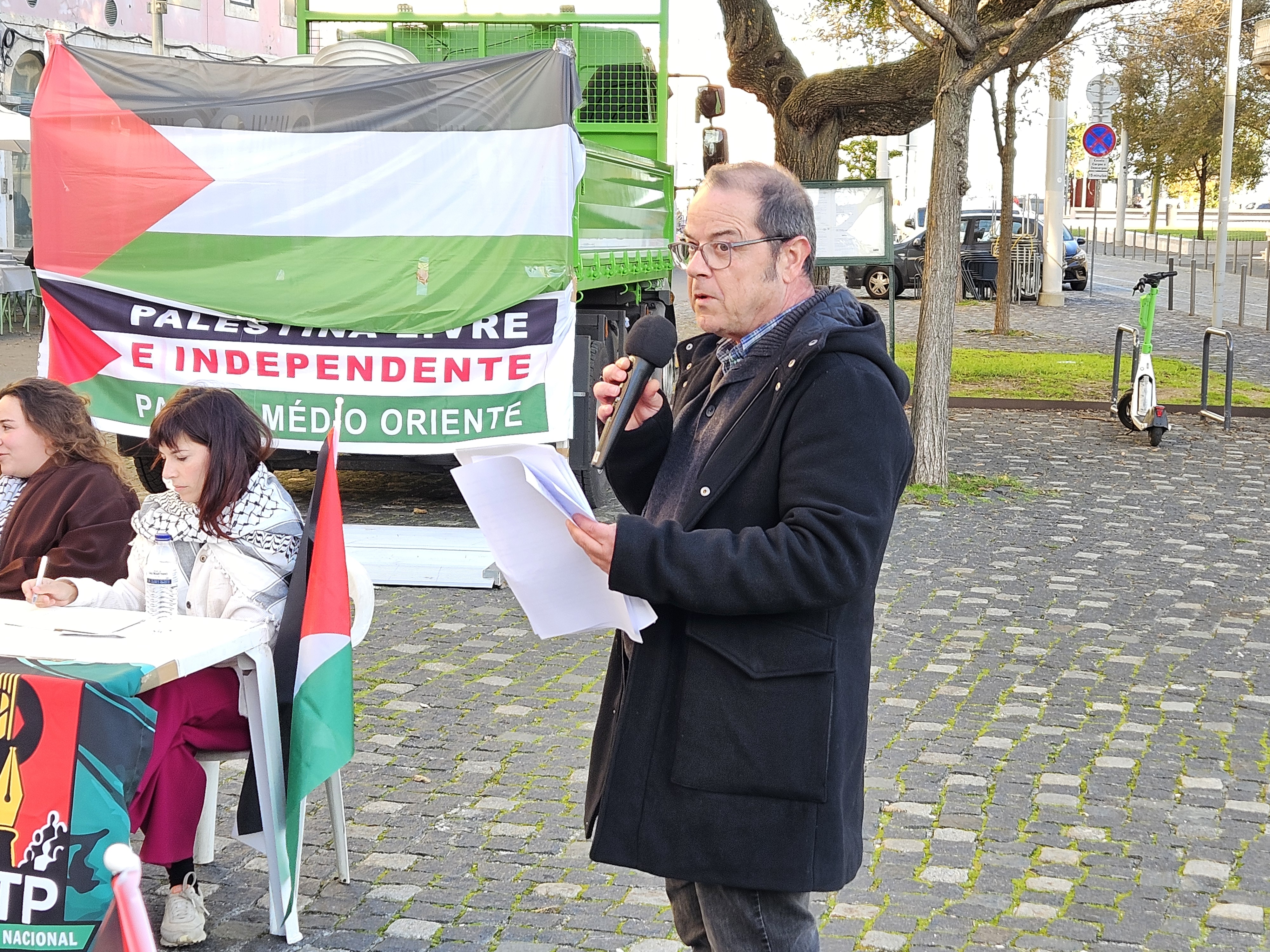 Carlos Almeida (MPPM) contextualizou a luta histórica do povo palestino, denunciou a falsidade do cessar-fogo em Gaza e a continuação do genocídio, acusou a cumplicidade da comunidade internacional e destacou a heroicidade da resistência do povo palestino.